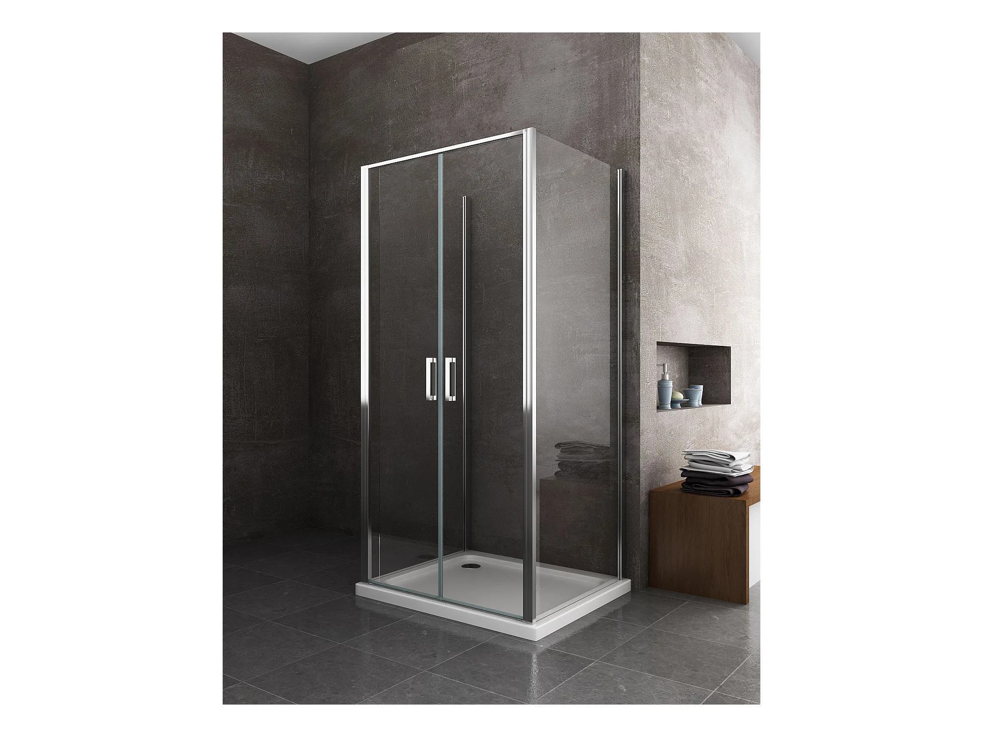 Douche de 6 mm H.190 avec deux parois fixes et une porte saloon (receveur non inclu) – 67,5-70 fixes x 107-110 vantail saloon