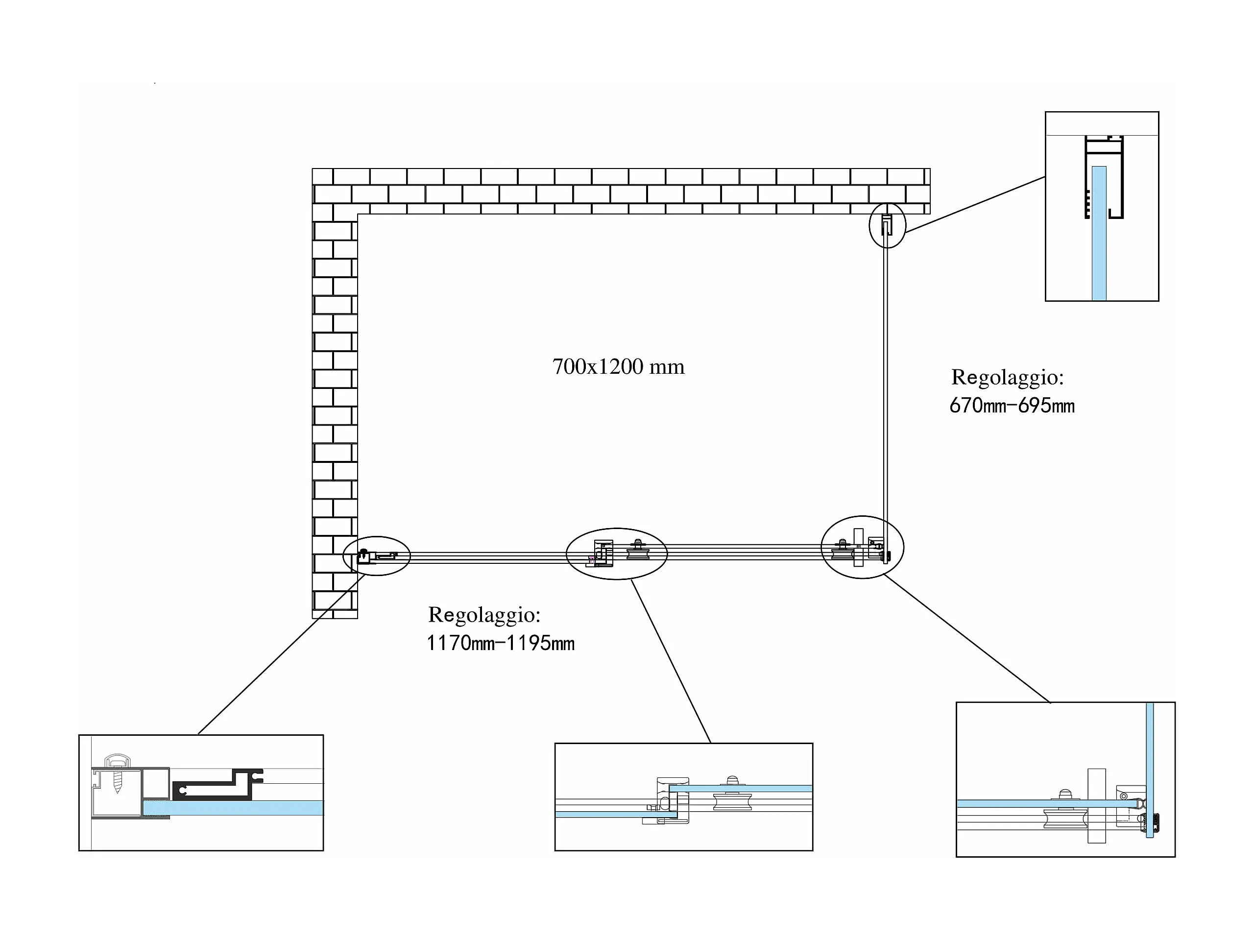 Douche de 8 mm H.190 avec un paroi fixe et une porte coulissante (receveur non inclu)– 70 fixe x 120 coulissante
