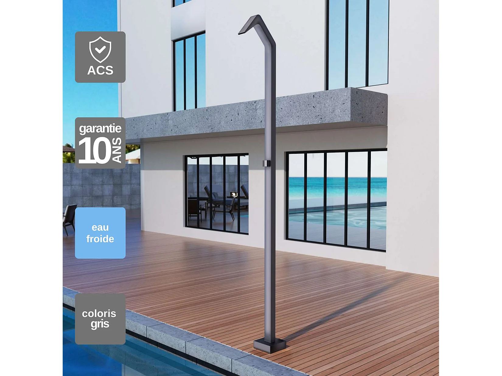Douche de piscine Niagara en Acier Inox.S316 Gris Cobalt – Tête 60x45mm /Corps 60x45mm/H. 2,18m – Garantie 10 ans - POOLIMEX