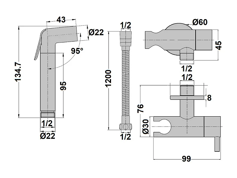 Douchette WC PAINI Cox ronde Chrome + support + flexible