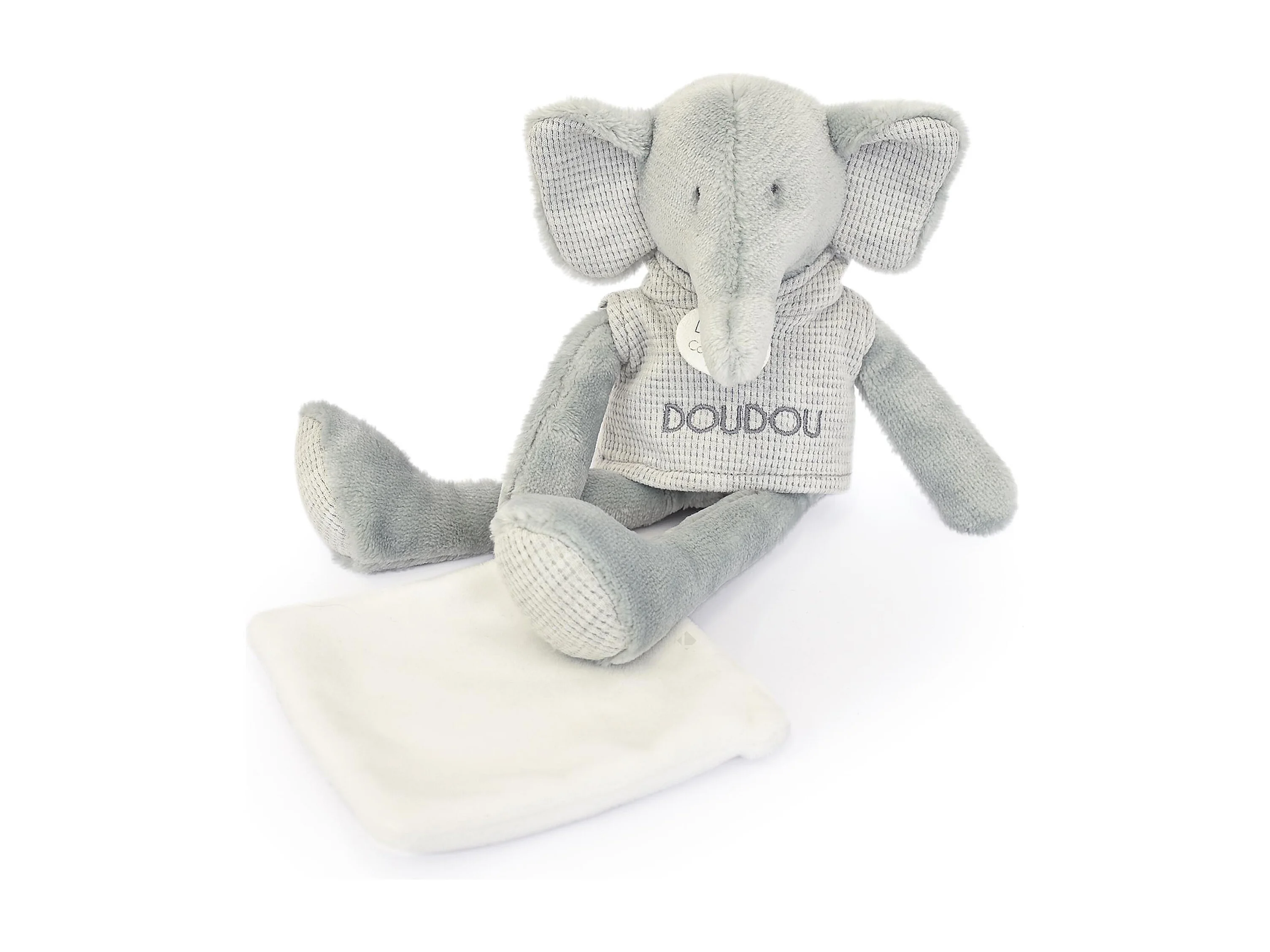 Doudou éléphant polyester 25 cm collection SWEETY DOUDOU gris/blanc
