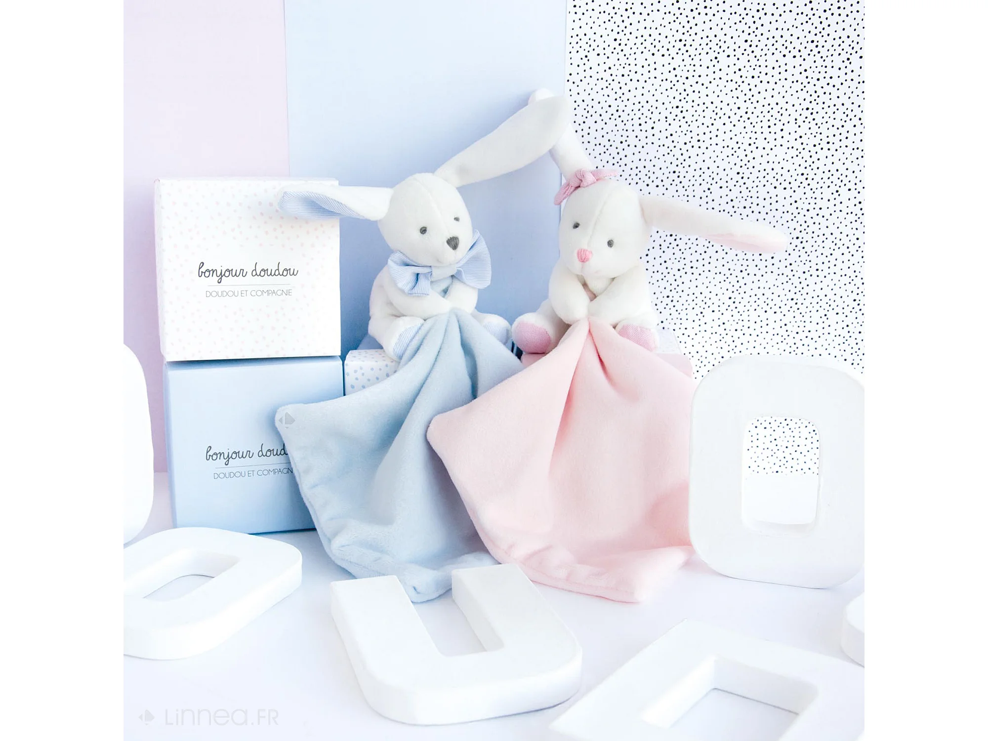 Doudou lapin 10 cm polyester collection J'AIME MON DOUDOU bleu