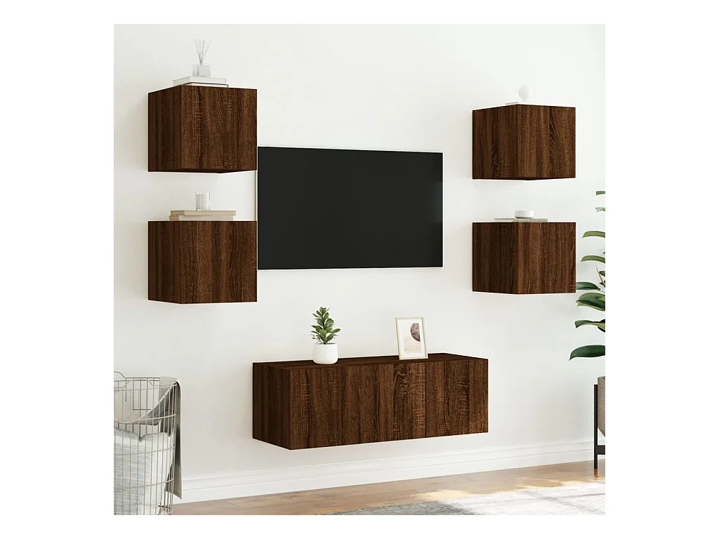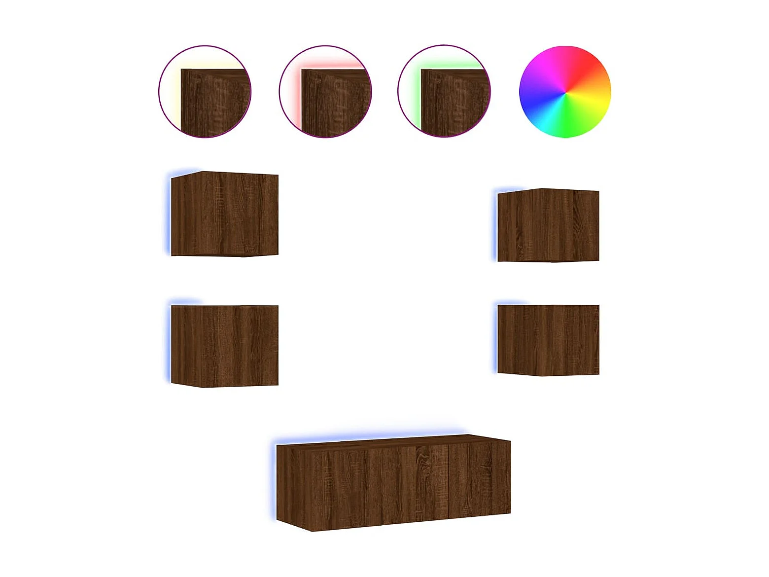 Doylestown Unités murales TV avec LED 6 pcs chêne marron bois d'ingénierie