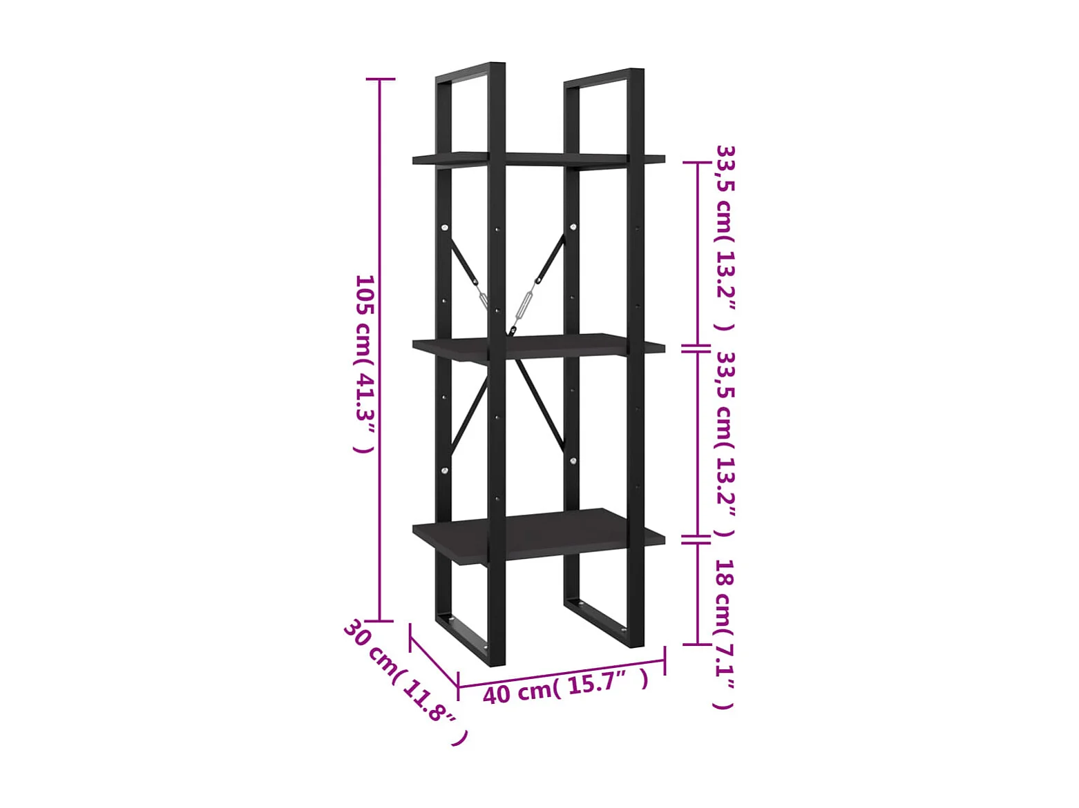 Drachten Bibliothèque à 3 niveaux gris 40x30x105 cm bois d'ingénierie