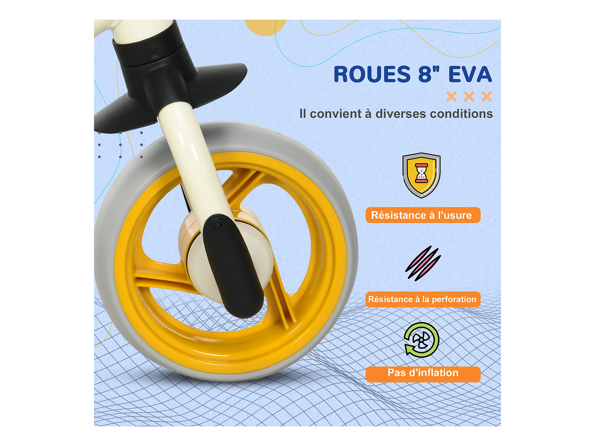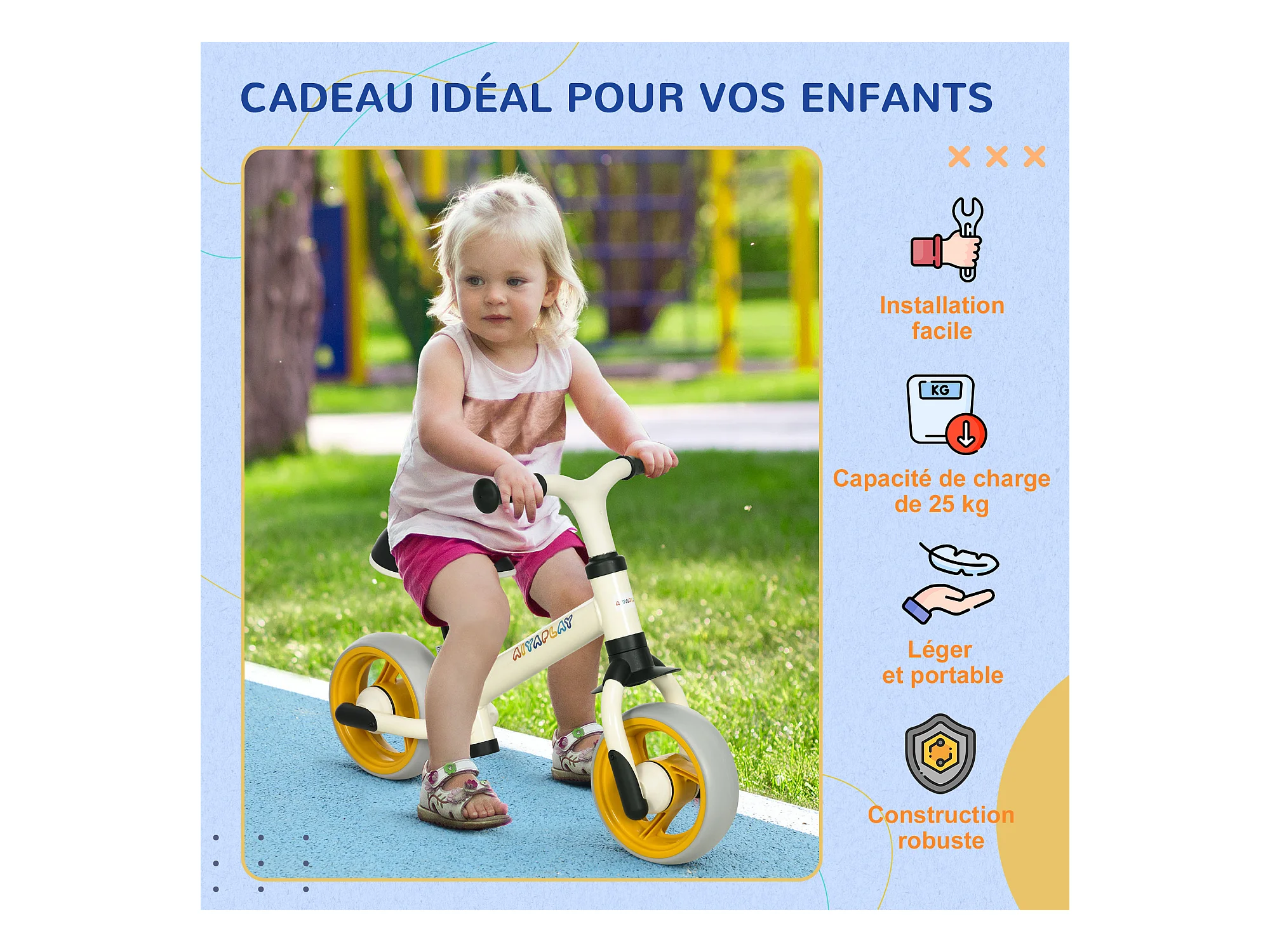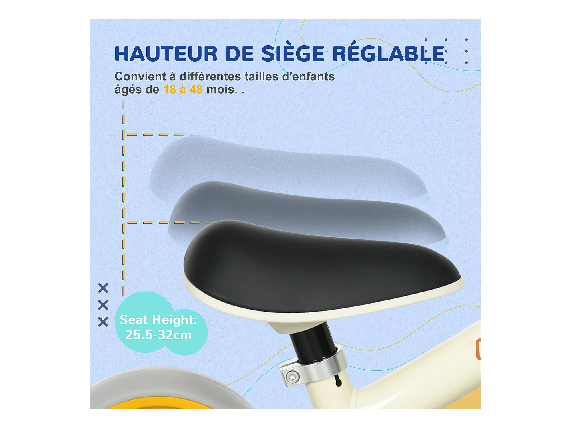 Draisienne enfant selle réglable roues EVA charge max. reco. 25 Kg acier crème