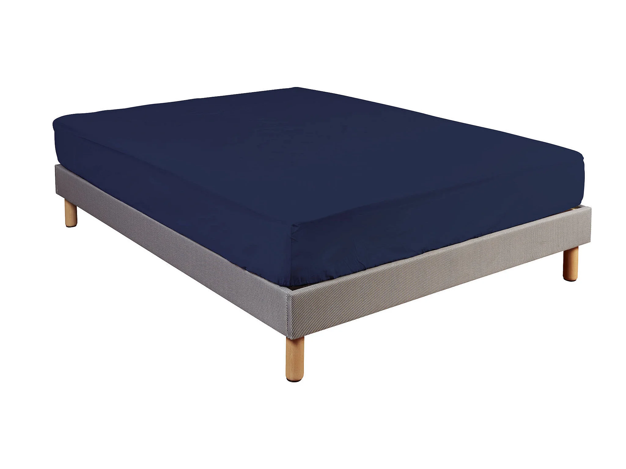 Drap housse 100% coton bleu marine - bonnet 27 cm 80x190