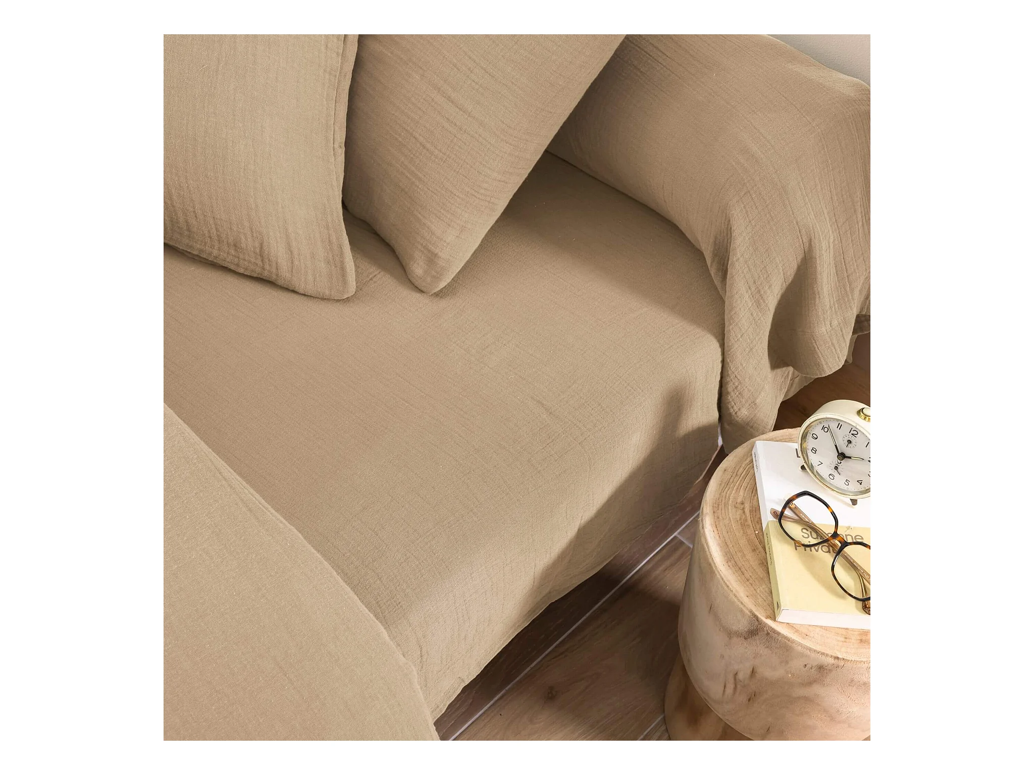 Drap housse 180x200 gaze de coton beige Terre de Nuit NOA - NOA