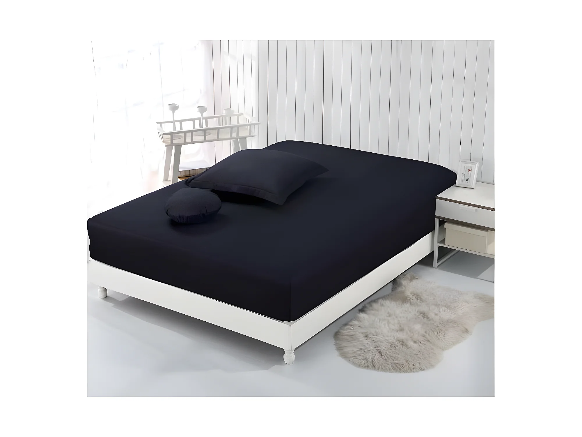 Drap Housse 100% Coton Noir 160x200x30 cm - Certifié OEKO-TEX
