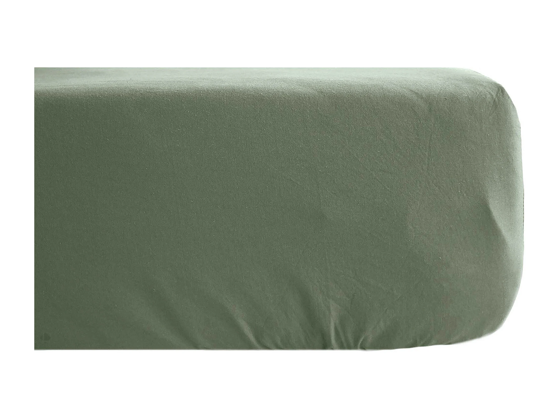 Drap housse PALACE pur coton lavé 90x190 cm bonnet 30 cm uni vert mousse