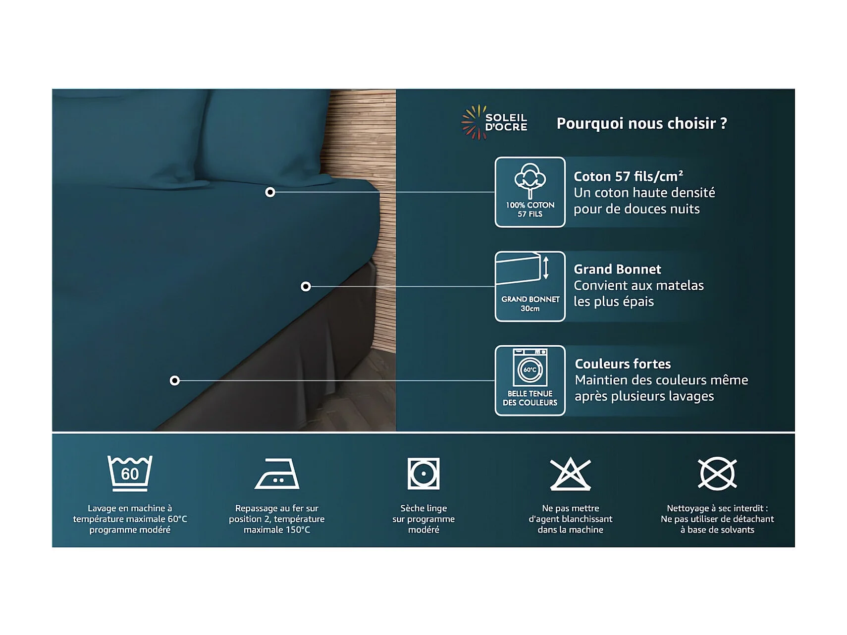 Drap housse en coton 57 fils 160x200 cm UNI vieux rose, par Soleil d'ocre