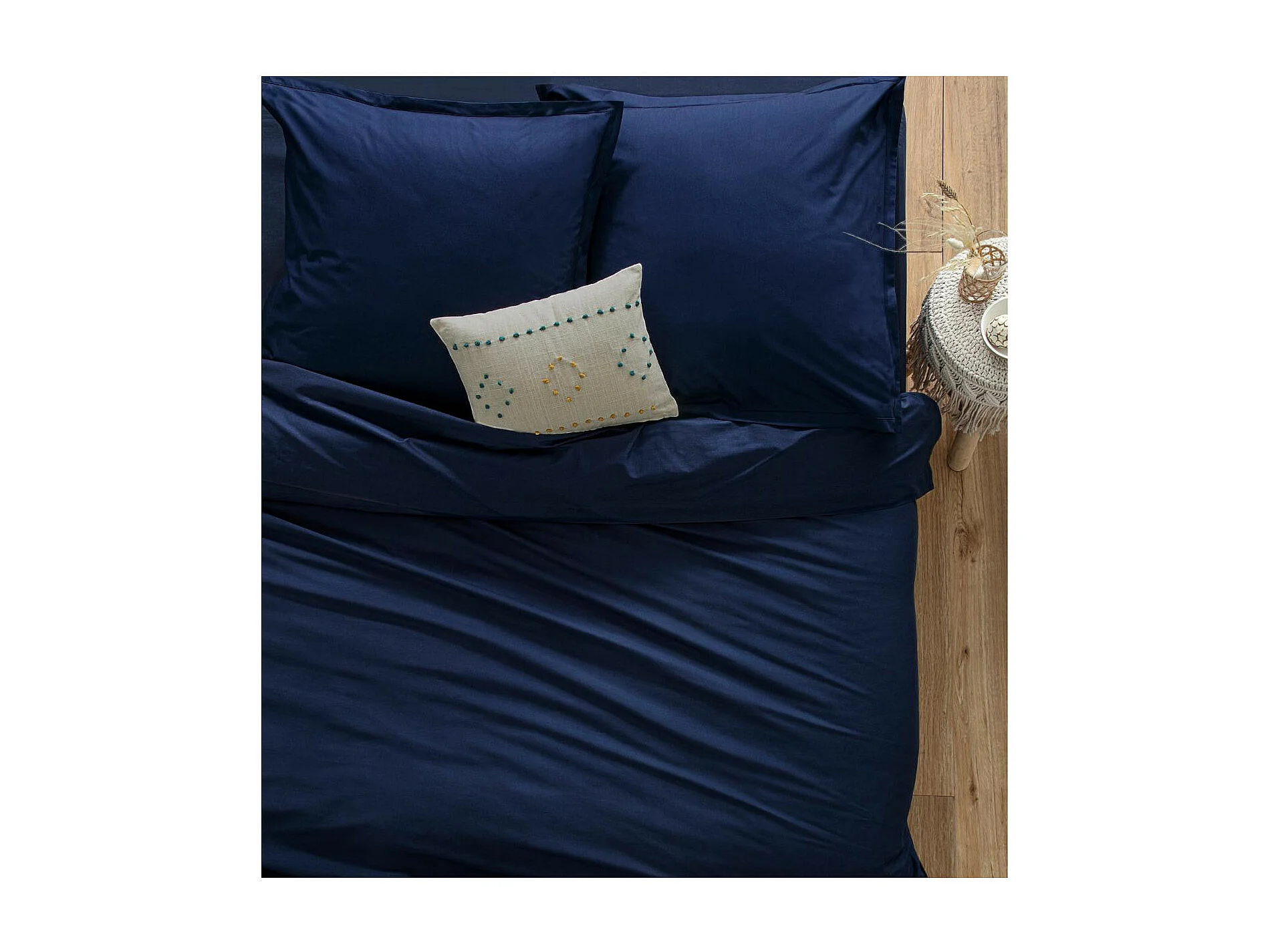Drap housse coton lavé bonnet 30 cm - SOMEO Bleu marine 140x190 - CELESTE