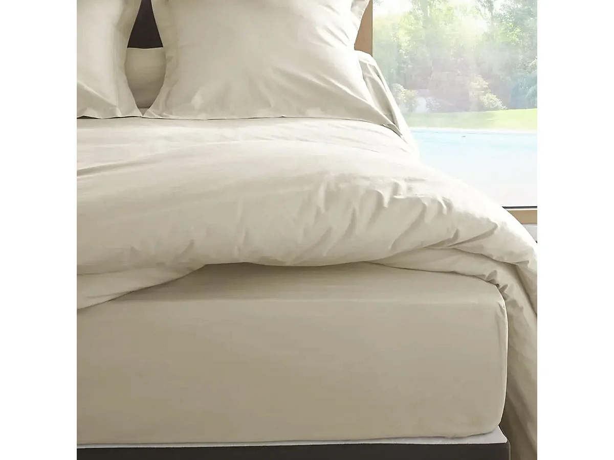 Drap housse Ivoire en percale de coton 80 fils 160 x 200 x 35 cm