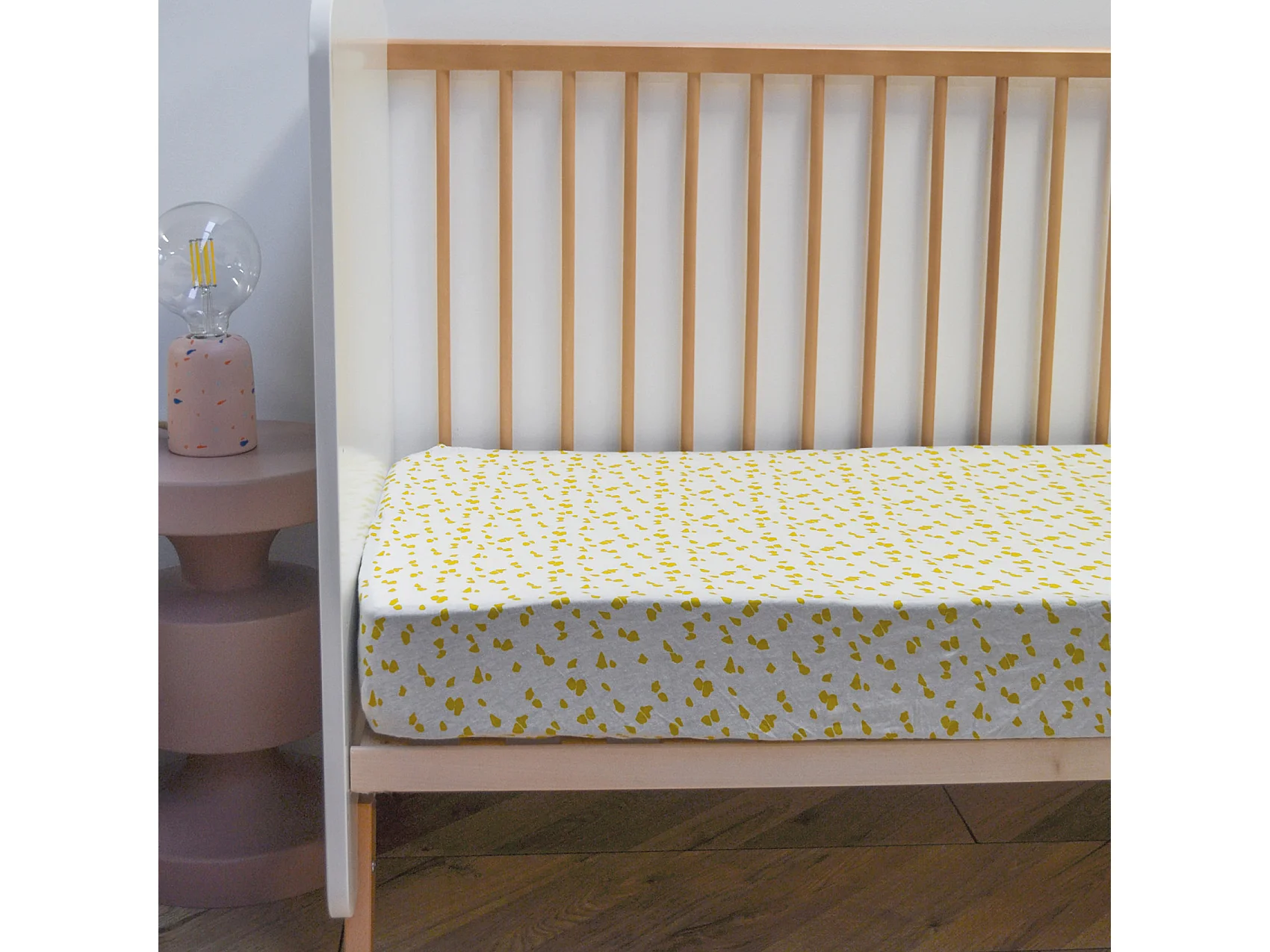 Drap housse en coton 57 fils 70x140 cm BEBE moutarde, par Soleil d'Ocre