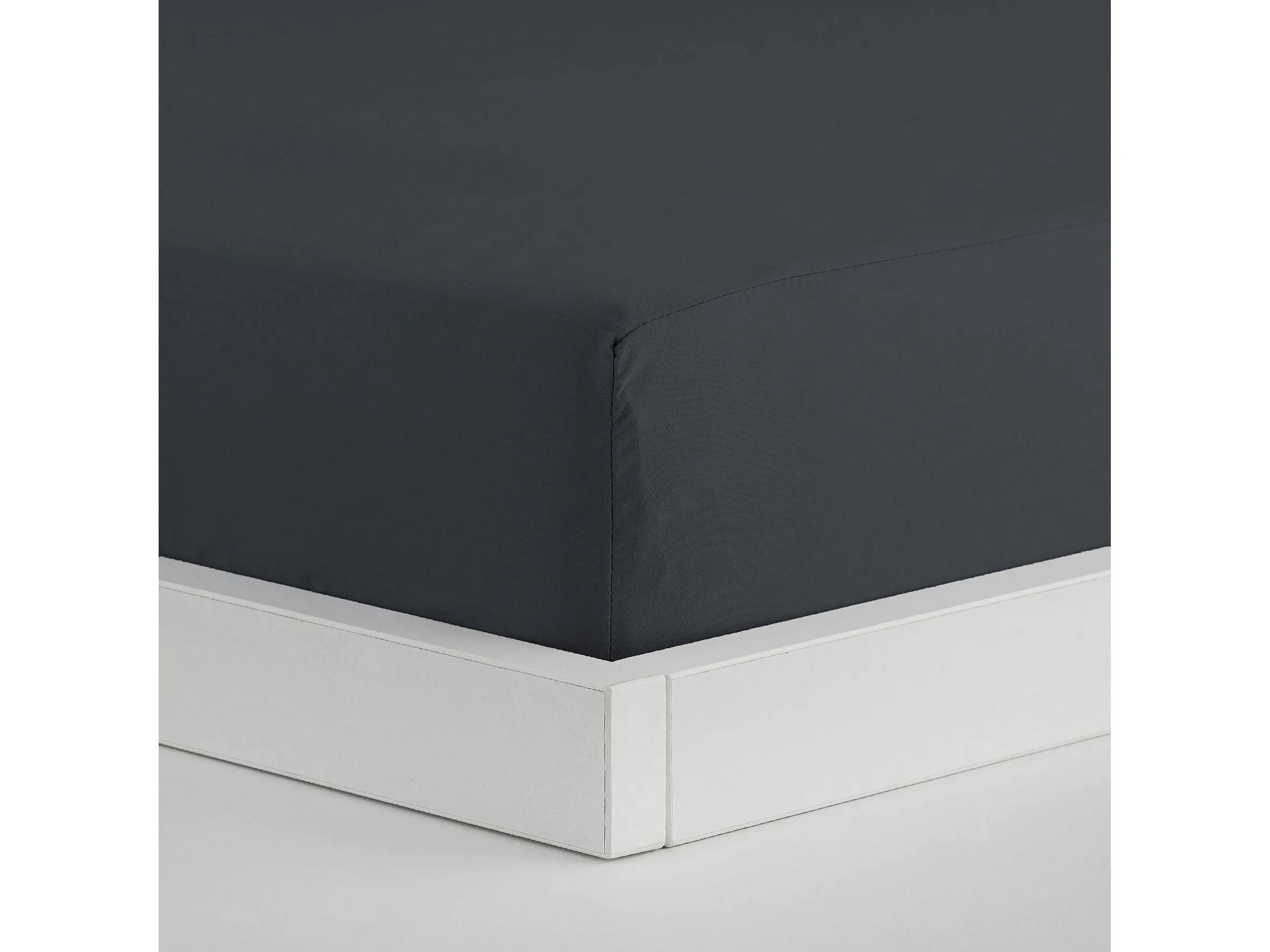 Drap housse en coton 57 fils uni bonnet 25cm anthracite 90x200cm
