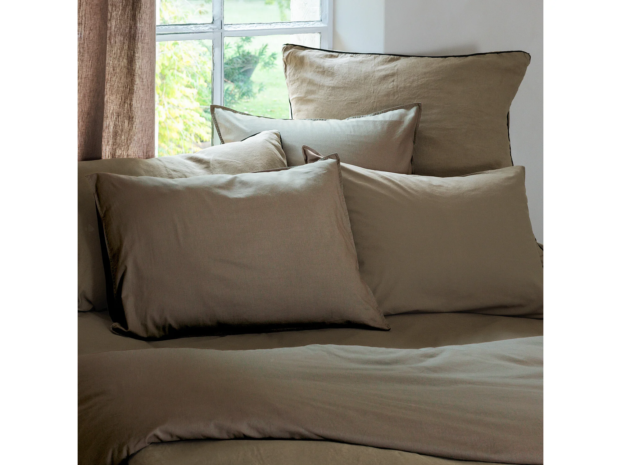 Taie d'oreiller 65x65 cm pur coton lavé PALACE marron cognac