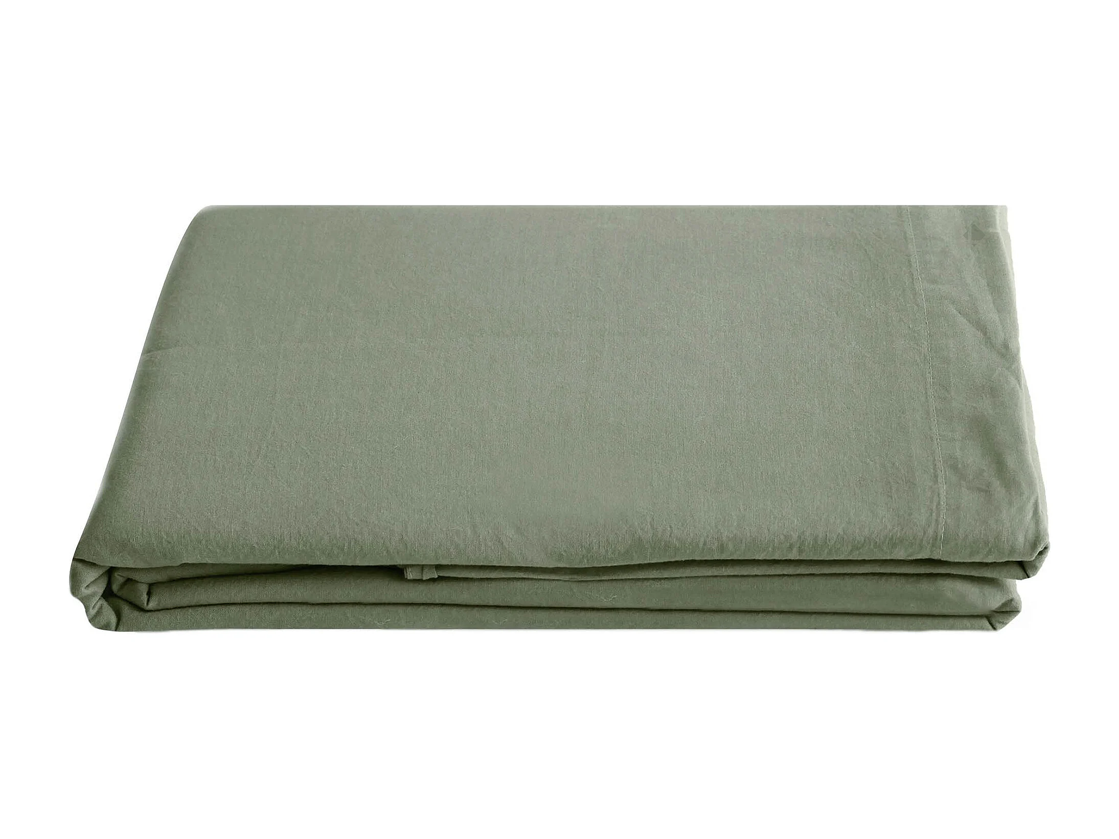 Drap plat 240x290 cm pur coton lavé PALACE vert sauge