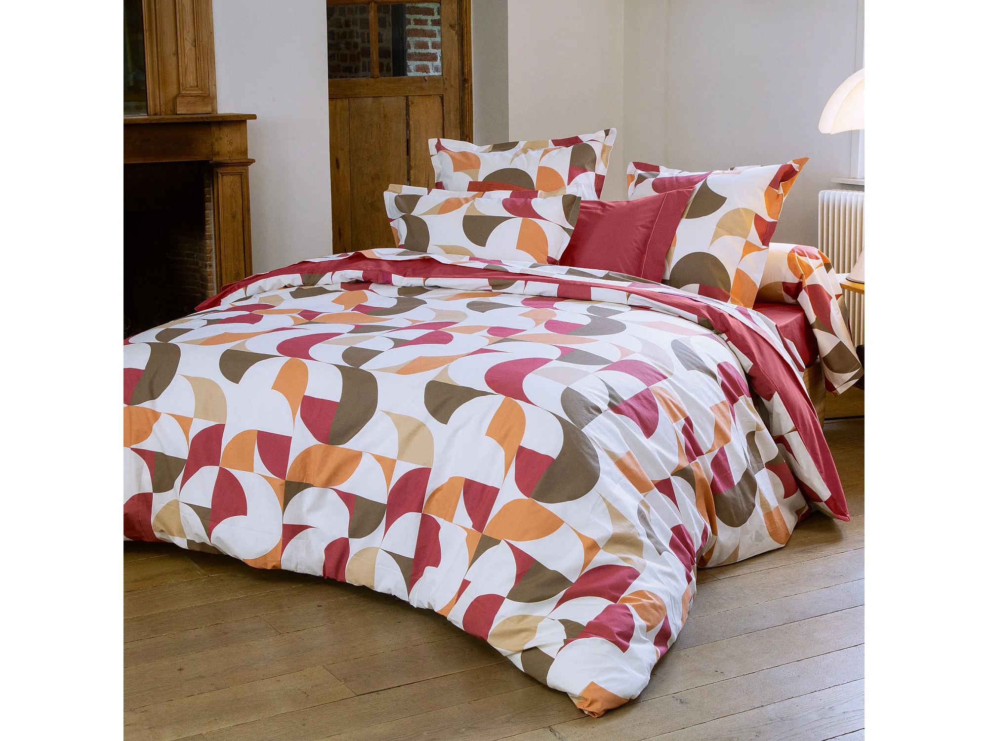 Drap plat 280x325 cm en 100% percale de coton MODULO blanc acajou