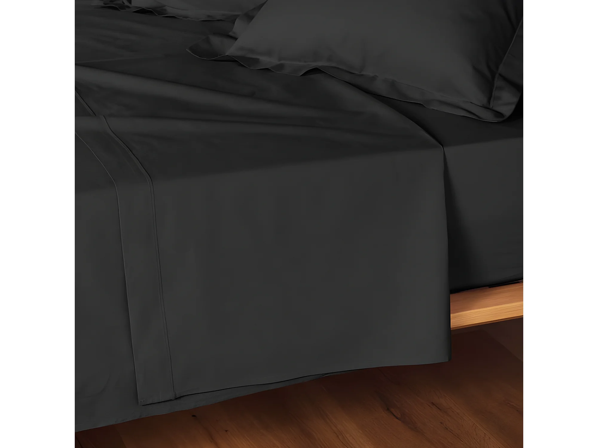 Drap plat en coton 57 fils 240x290 cm UNI noir, par Soleil d'ocre
