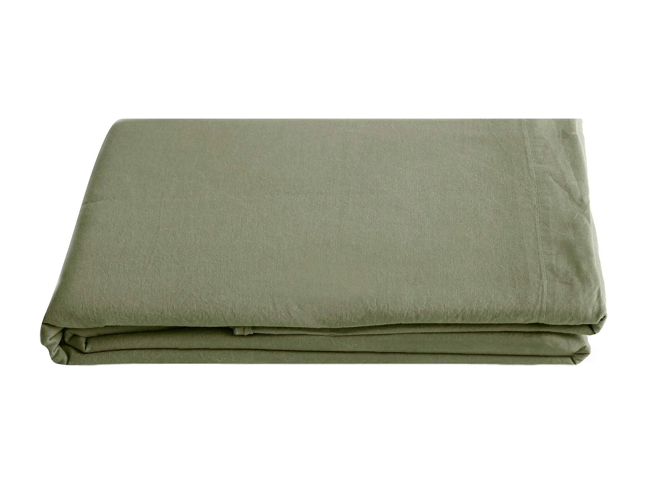 Drap plat uni 270x300 cm 100% lin lavé effet froissé SONATE vert Sauge