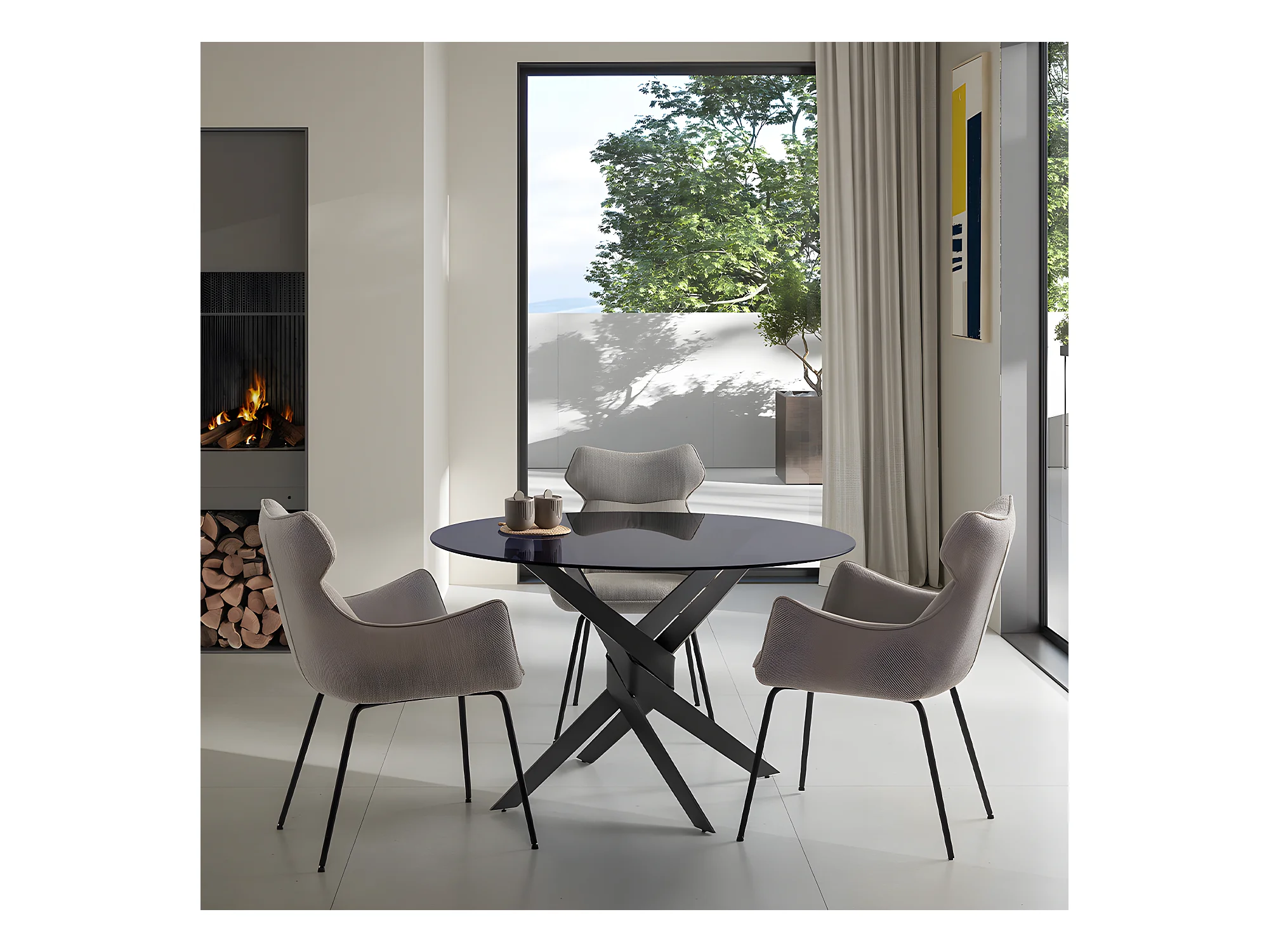 Dravon - Table à manger 4 personnes en verre trempé et métal - Noir