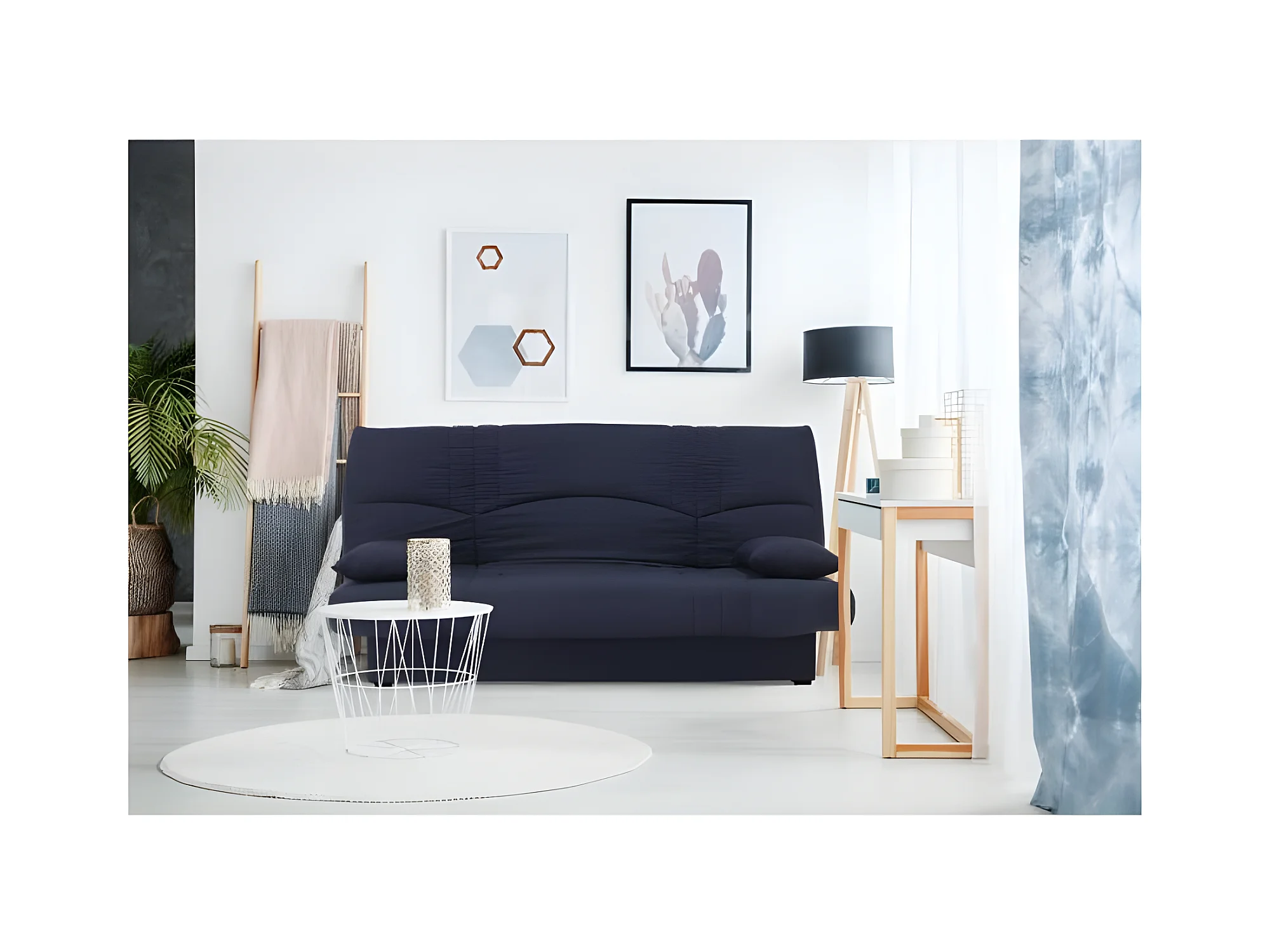 DREAM Banquette clic clac 3 places - Tissu bleu fonce - Slyle contemporain - L 190 x P 92 cm