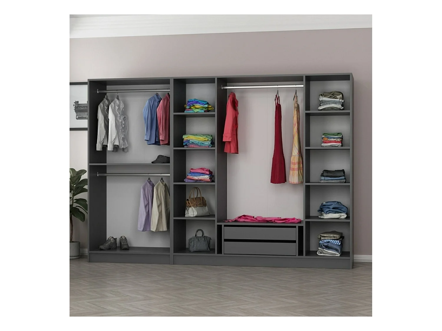 Dressing avec étagères et penderie - 15 espaces de stockage - 270 x 210 x 52 cm OPERA