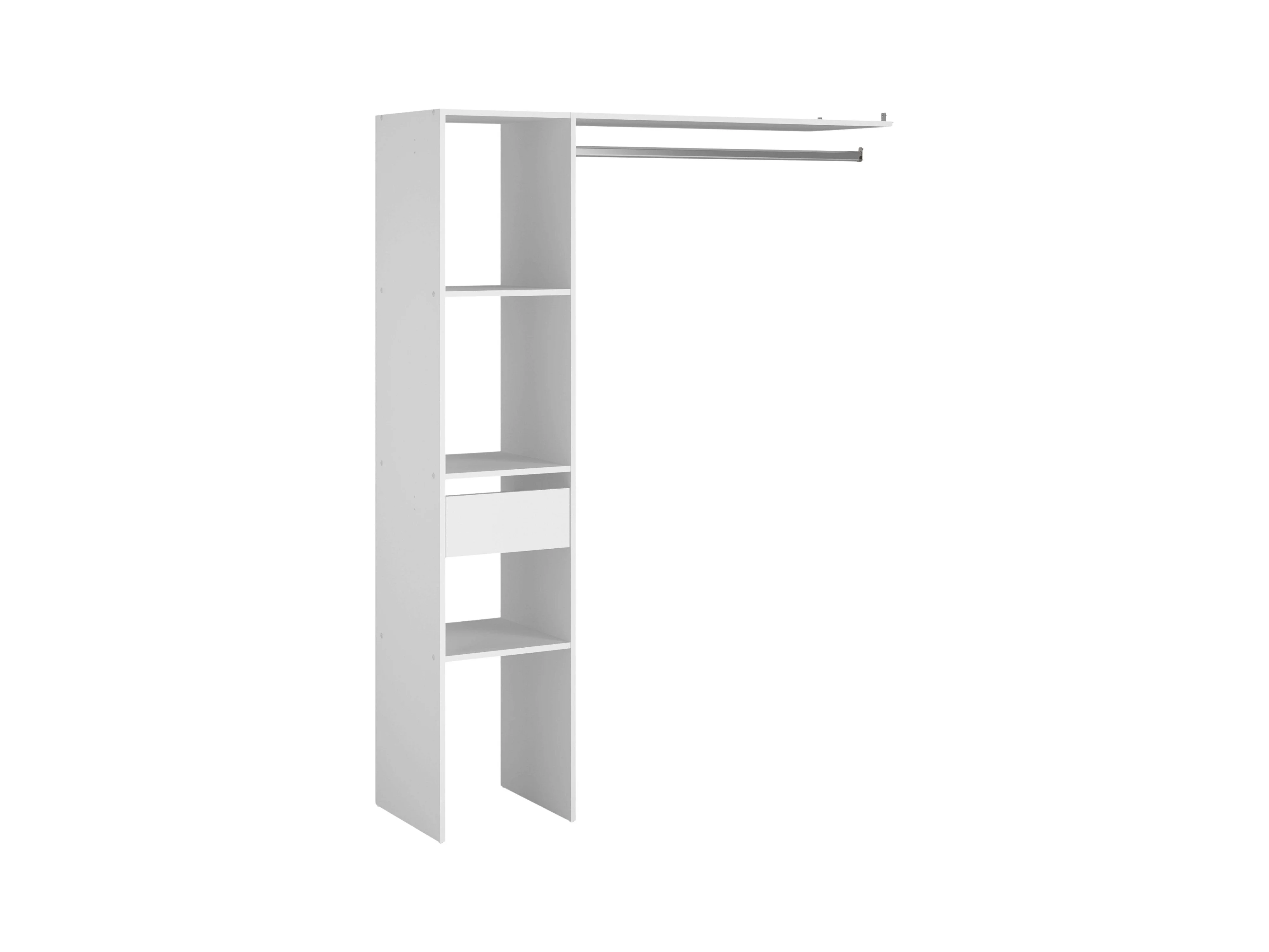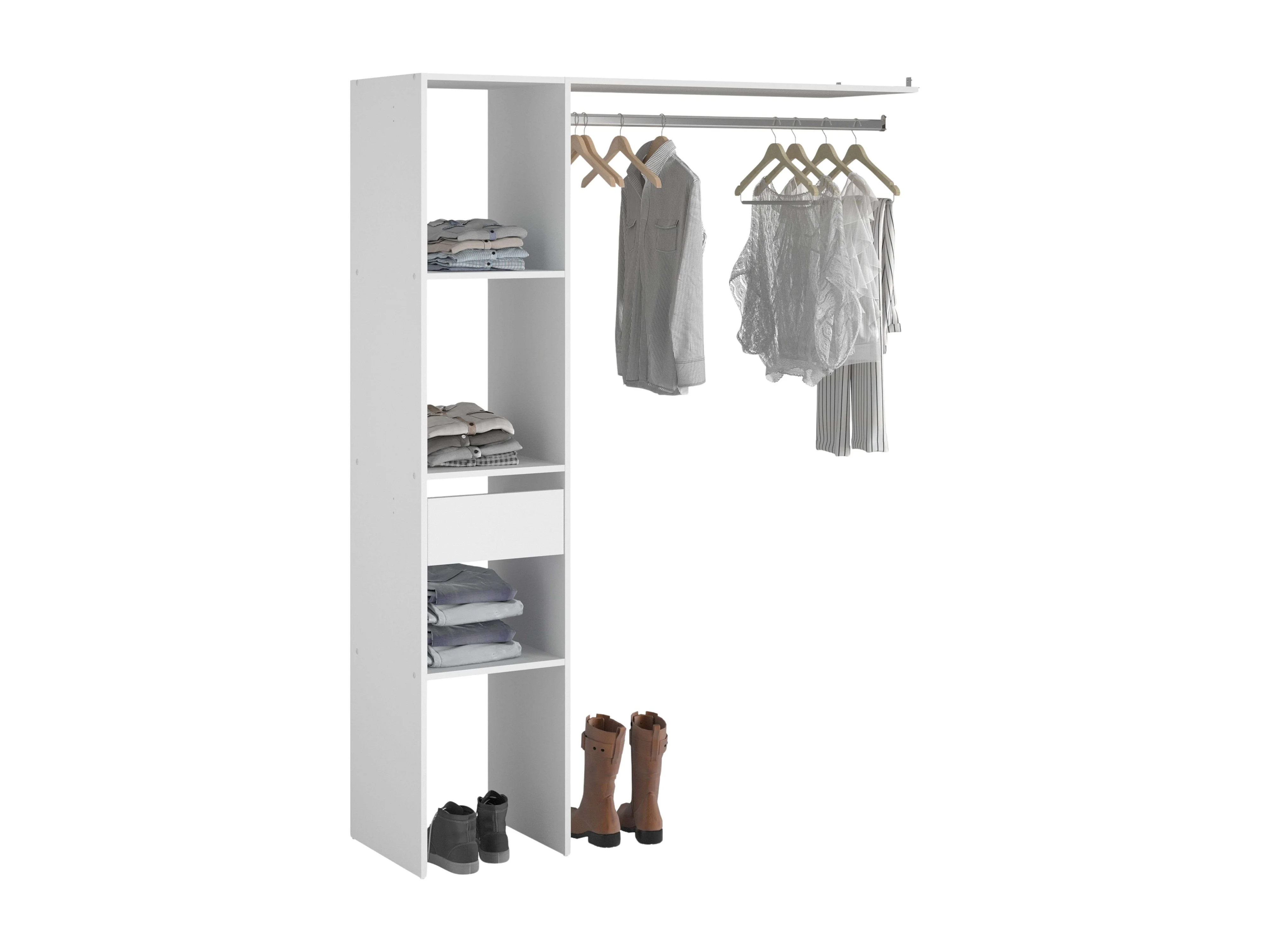 Dressing blanc extensible avec 2 penderies, 4 étagères et 1 tiroir ELYSEE
