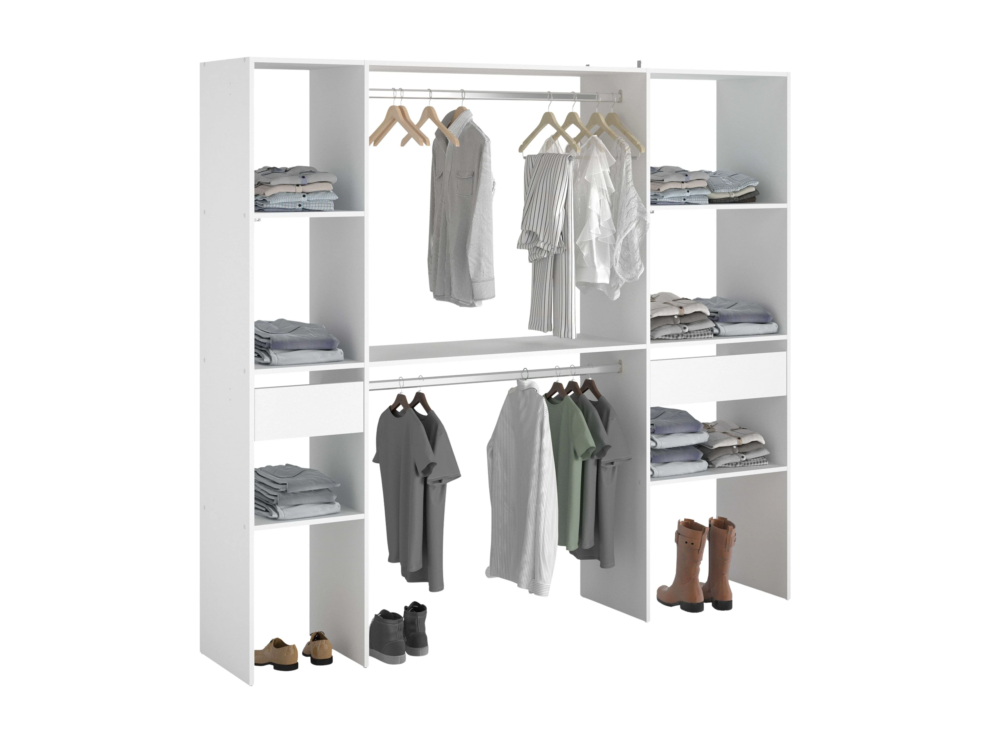 Dressing blanc extensible avec 2 penderies, 4 étagères et 2 tiroirs ELYSEE