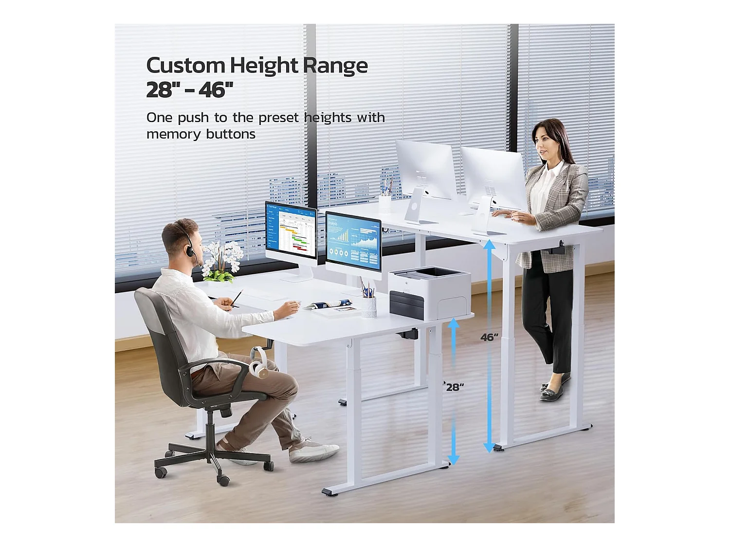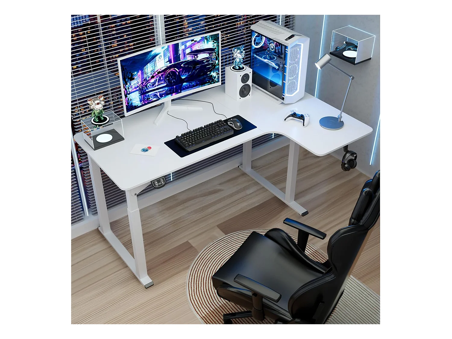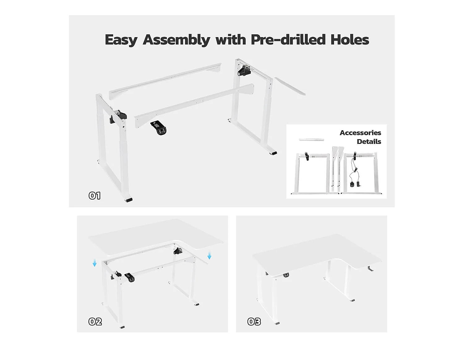 Dripex Bureau électrique réglable en hauteur en forme de L, 180 x 110 cm, avec moteur double, panneau d'épissage, blanc