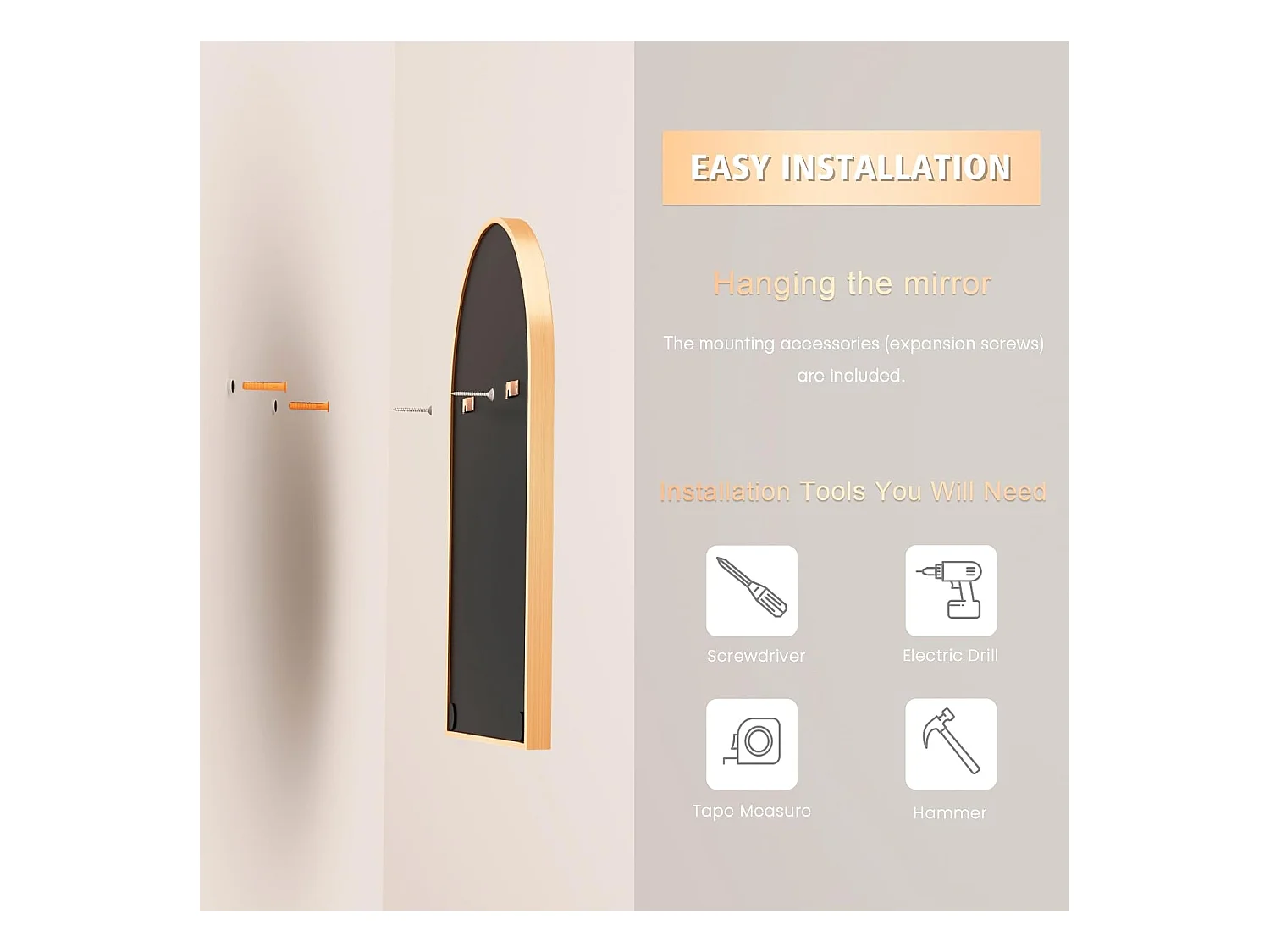 Dripex Miroir Mural Arche Grand Miroir de Maquillage 5075cm avec Cadre en Alliage dAluminium pour Entre Chambre Salon Salle de Bai