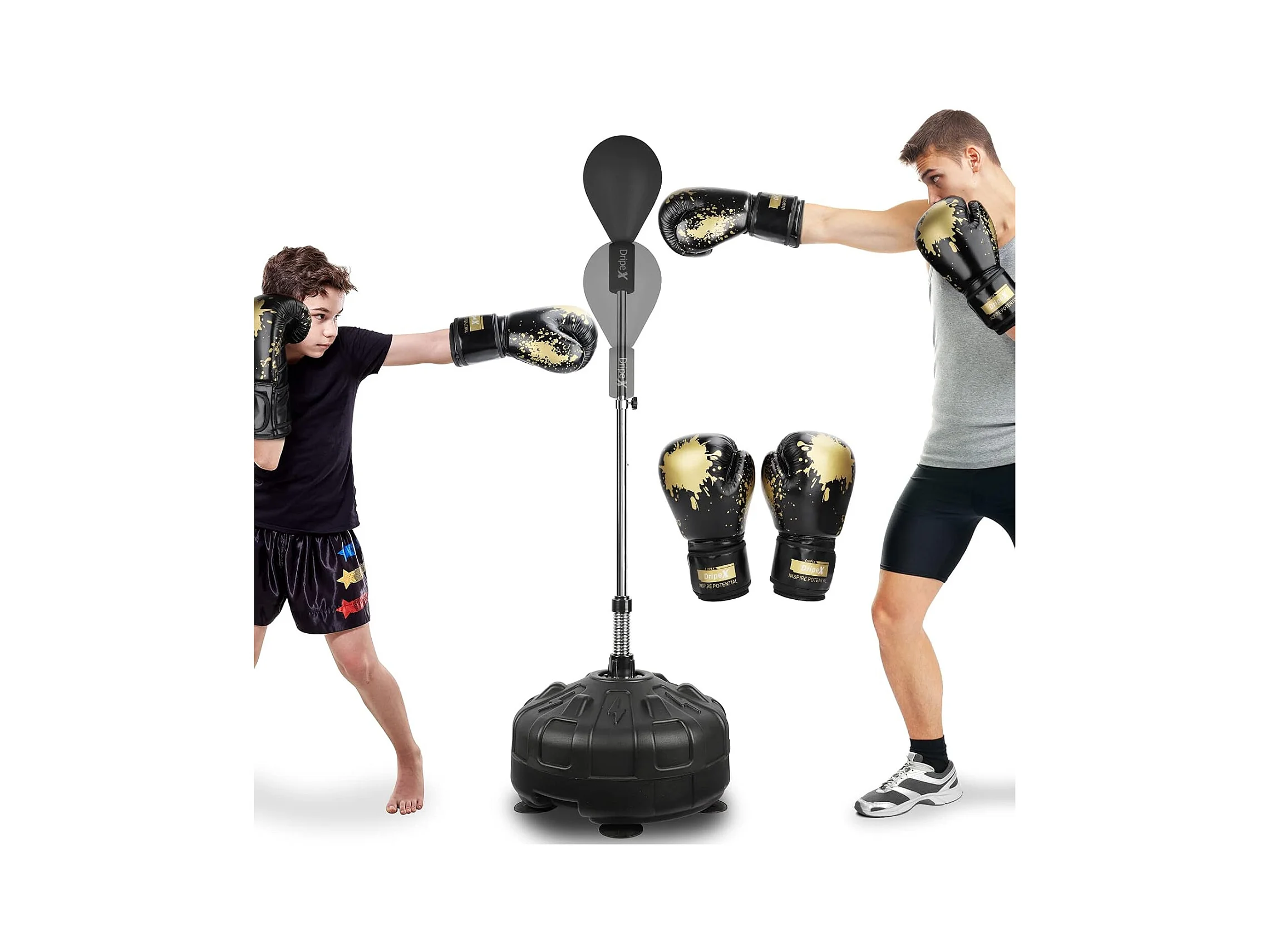 Dripex Punching Ball sur Pied avec Gants Enfant Sac de Frappe Boxe avec Base 6 Ventouses Hauteur Rglable 135-155 cm Noir