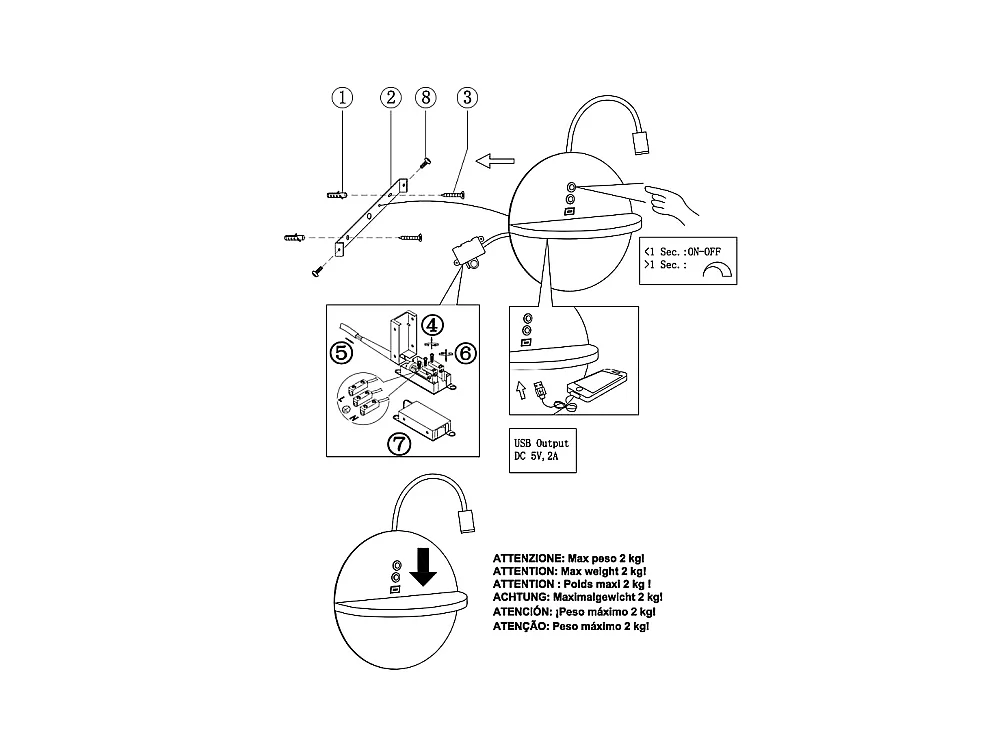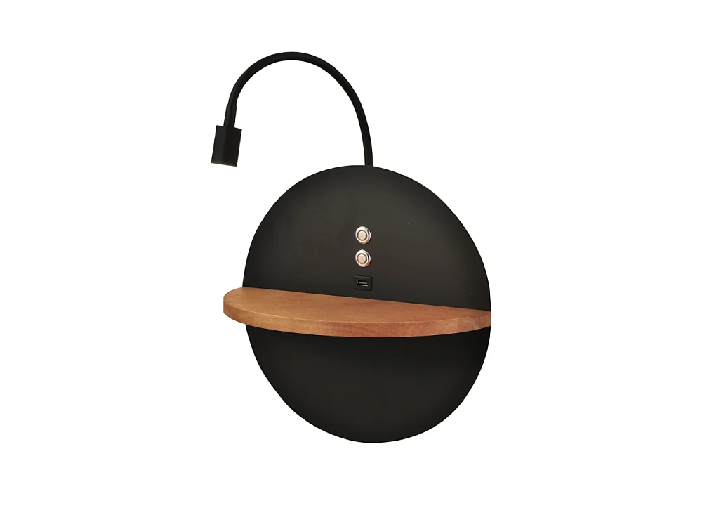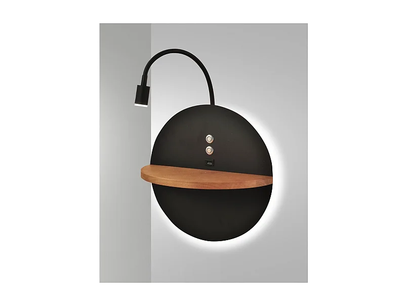 Dual - Applique murale avec étagère et lumière LED 15W Fabas Luce Touch variateur - Noir mat avec bois USB intégré