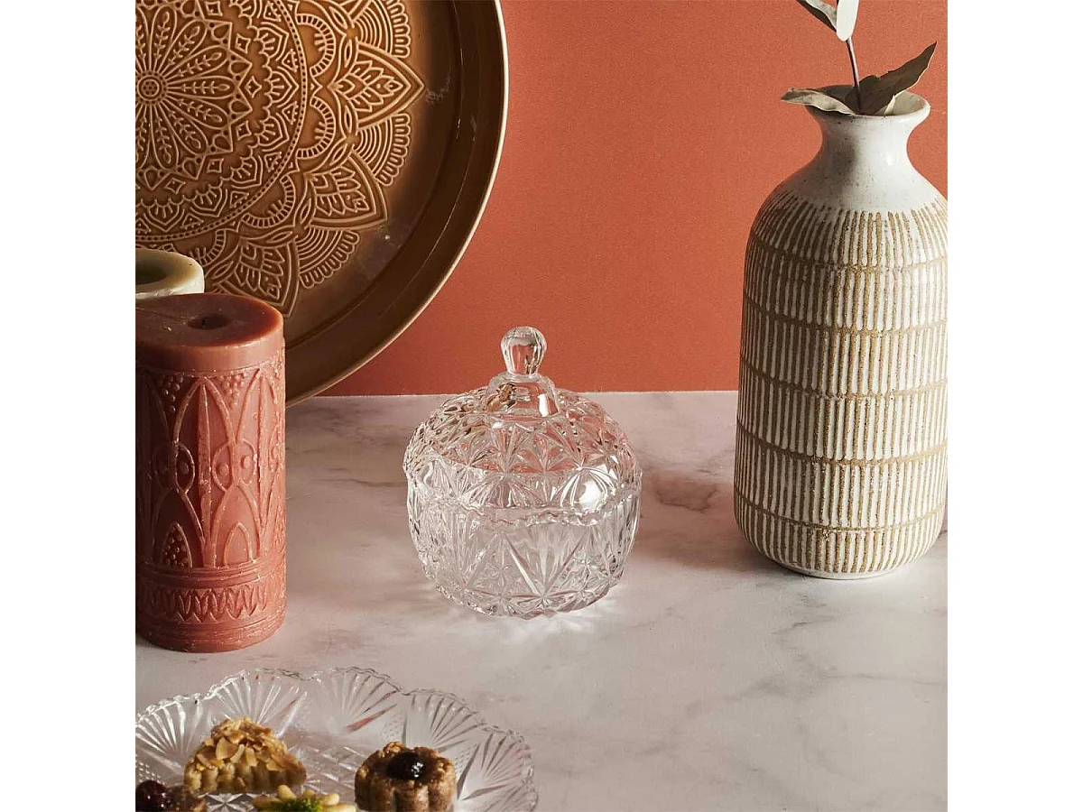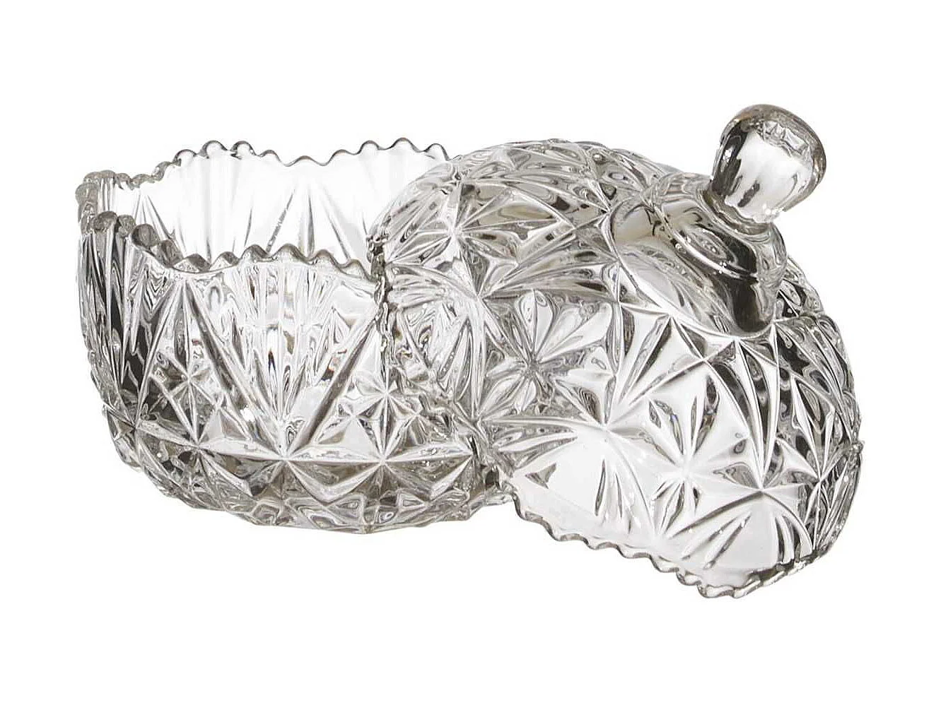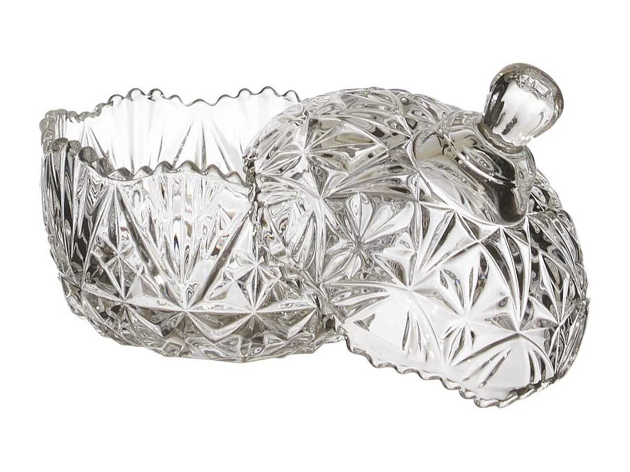 Bonbonnière en verre ciselée transparent Ø9,5cm