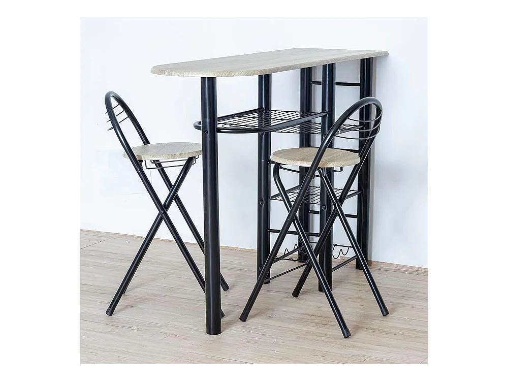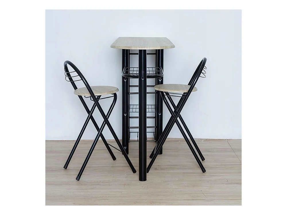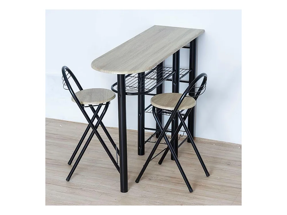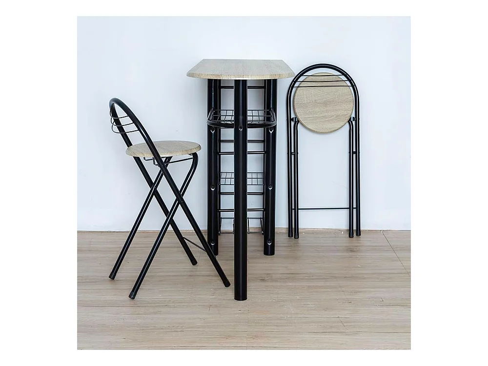 Table haute avec 2 tabourets en Noir et Sonoma 140x40x100cm Ani