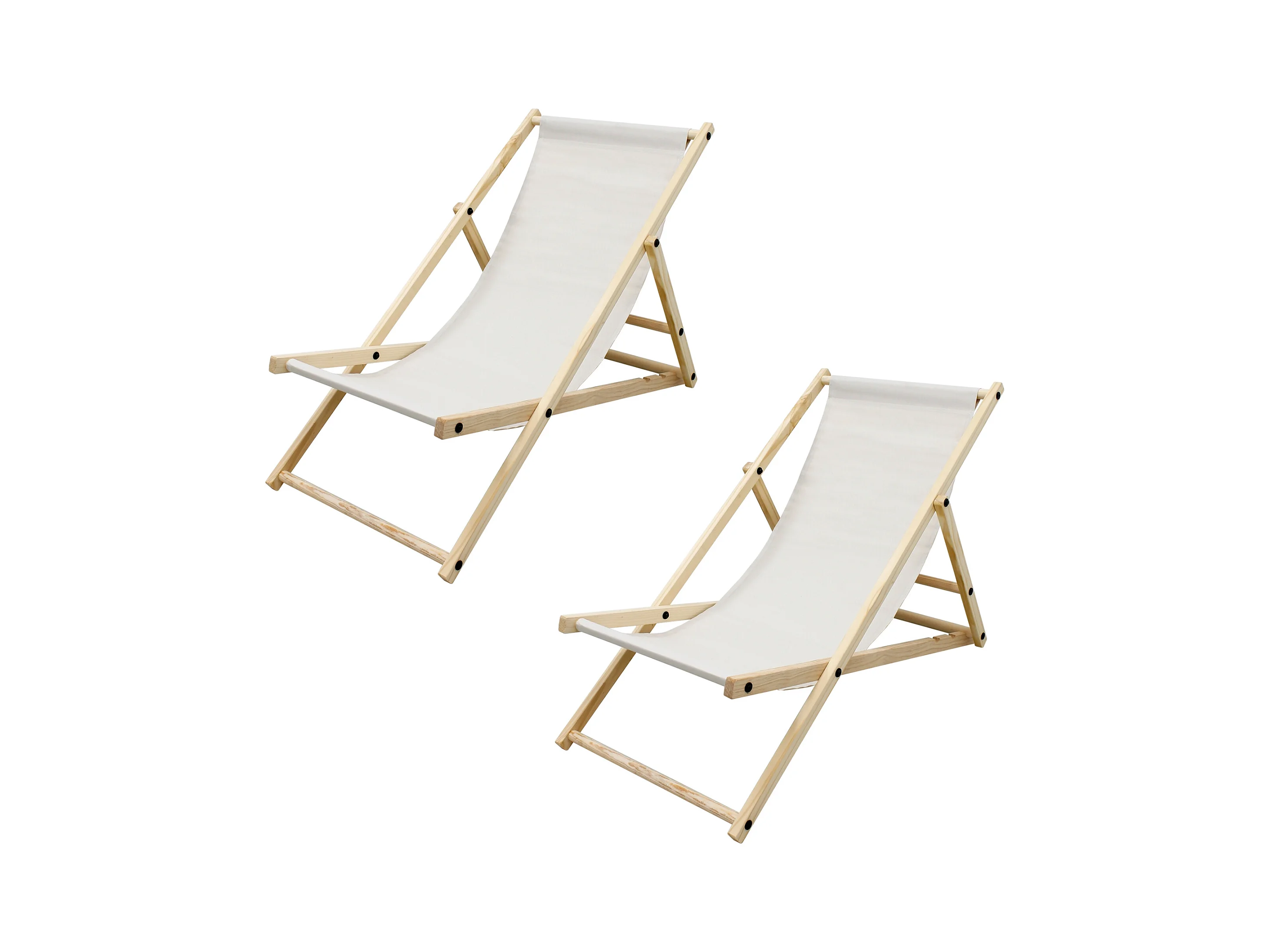 Set 2x Chaise longue de jardin pliable beige en bois chiliennes 3 positions de couchage jusqu'à 120 kg usage intérieur et extérieur balcon terrasse