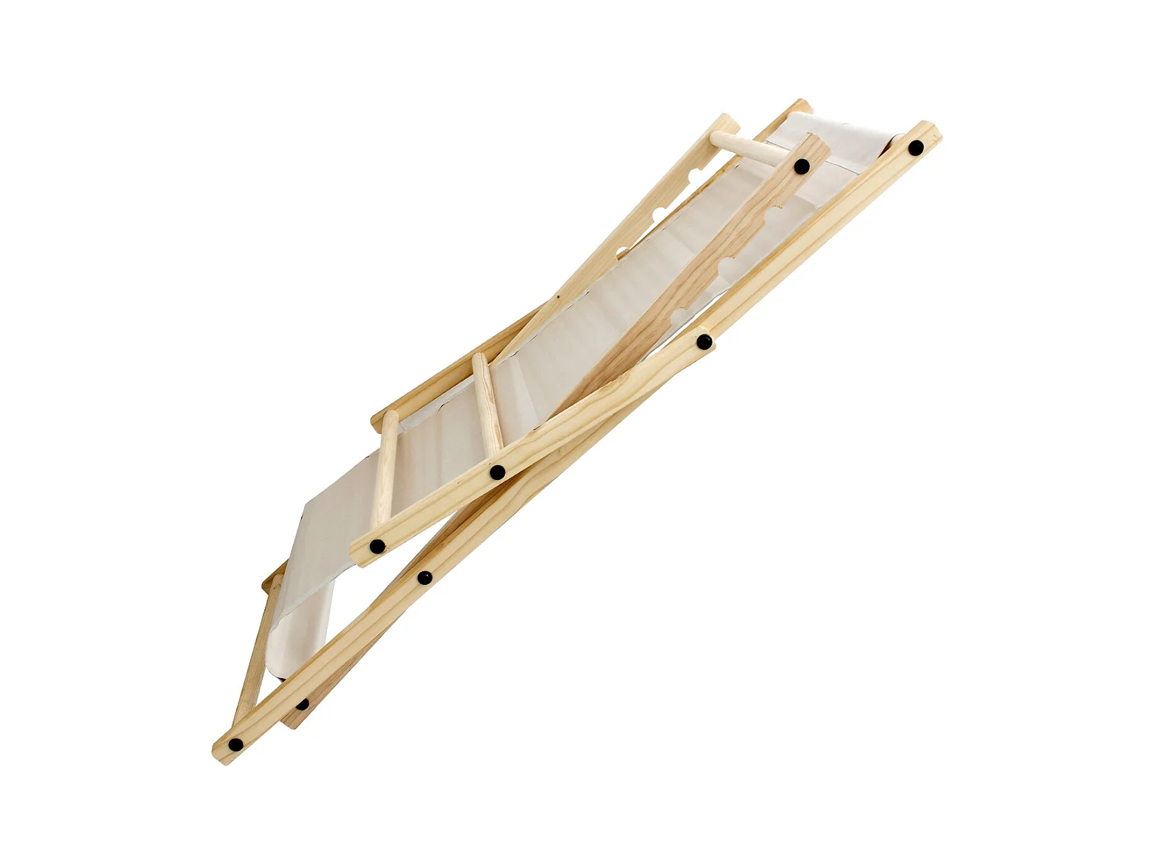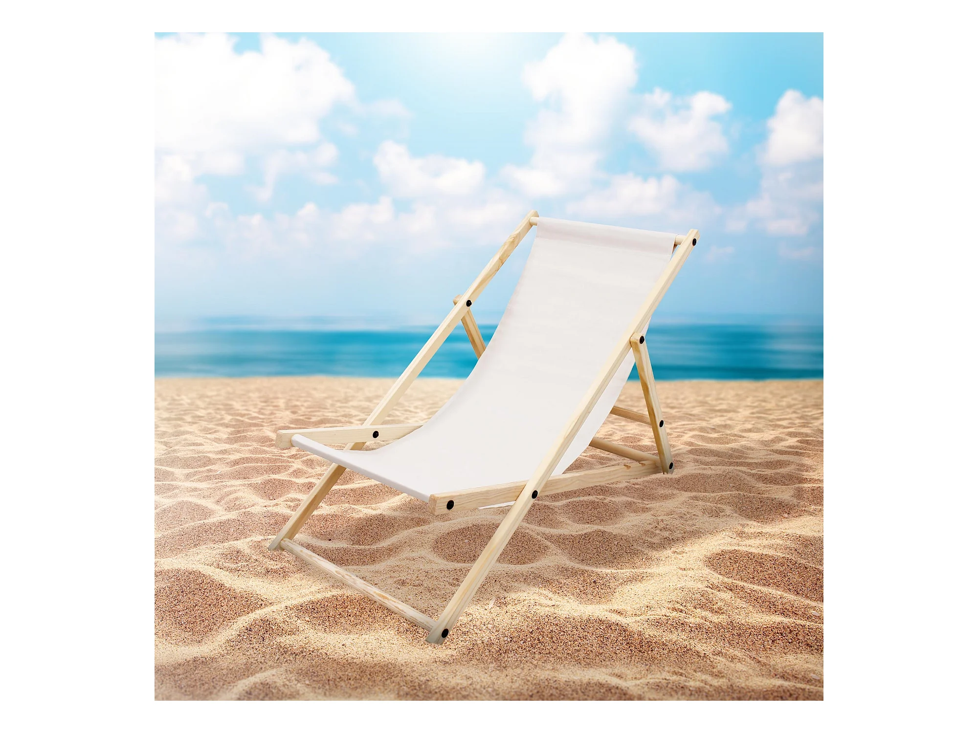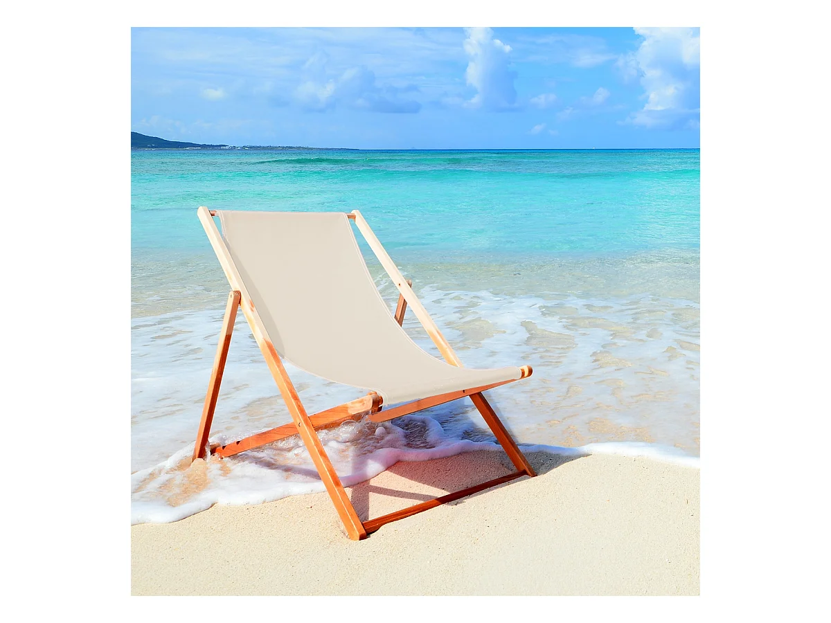 Chaise longue de jardin pliable beige en bois chilienne 3 positions de couchage jusqu'à 120 kg usage intérieur et extérieur balcon terrasse patio