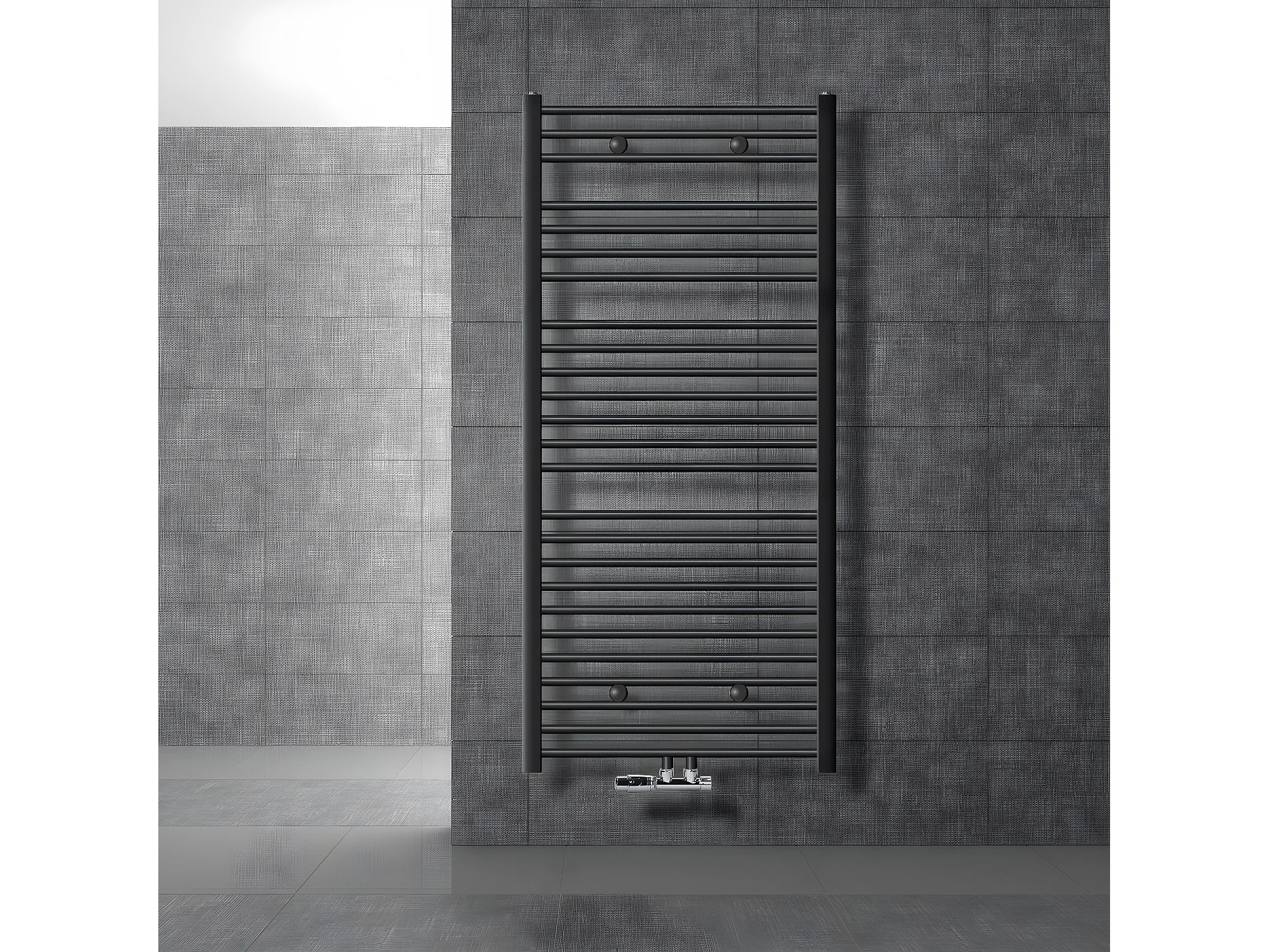 Radiateur Salle de Bain 750x1500 mm Anthracite Courbé Raccord Central au Bas et Thermostat
