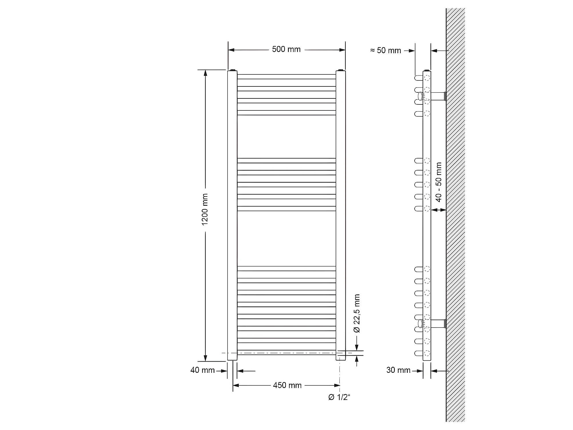 Iron EM Design Radiateur Sèche-Serviettes, 500 x 1200 mm, Blanc, Radiateur Salle de Bain