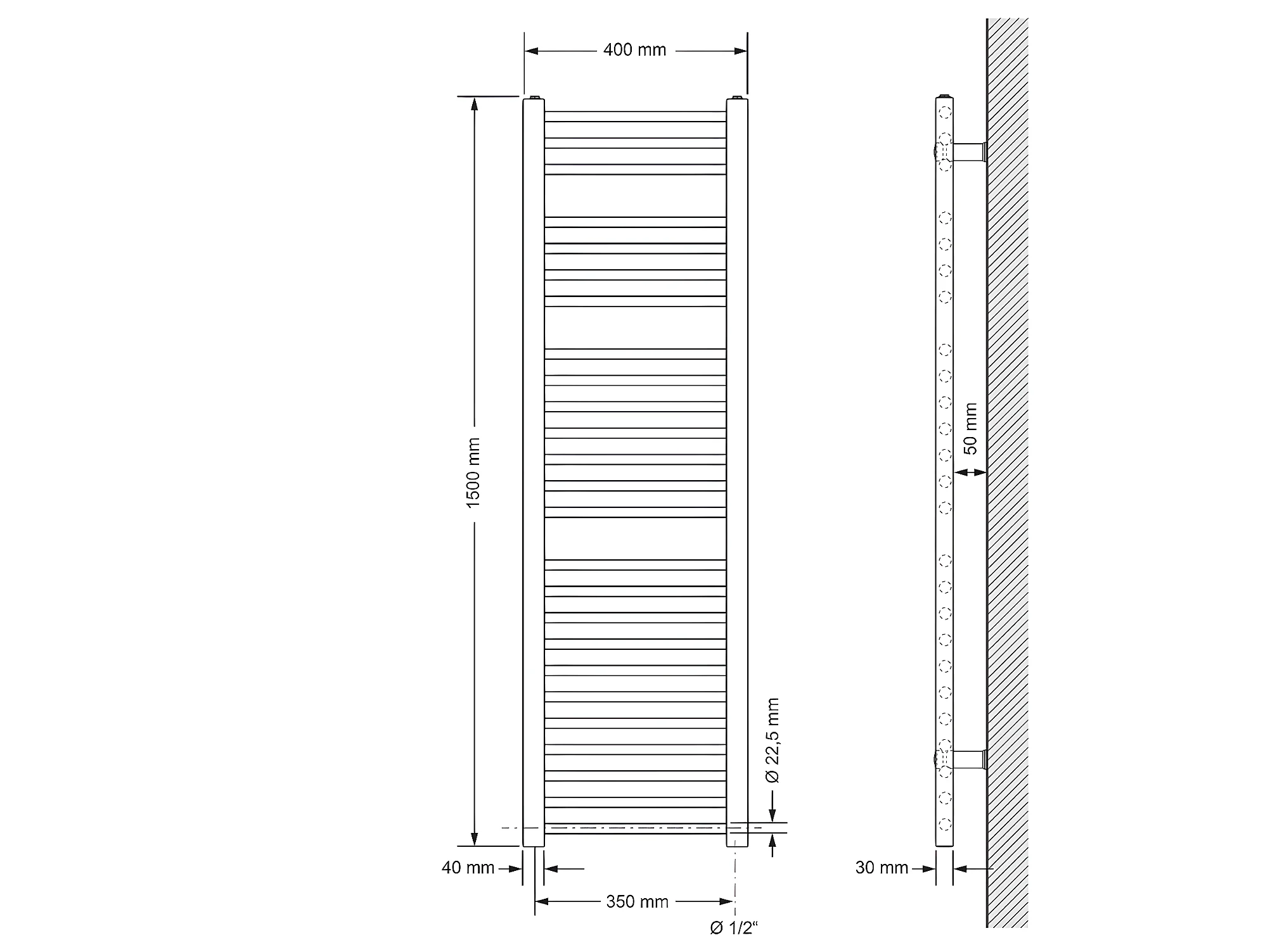 Radiateur Sèche-Serviettes Sahara pour Salle de Bain, 400 x 1500 mm, Blanc, Droit