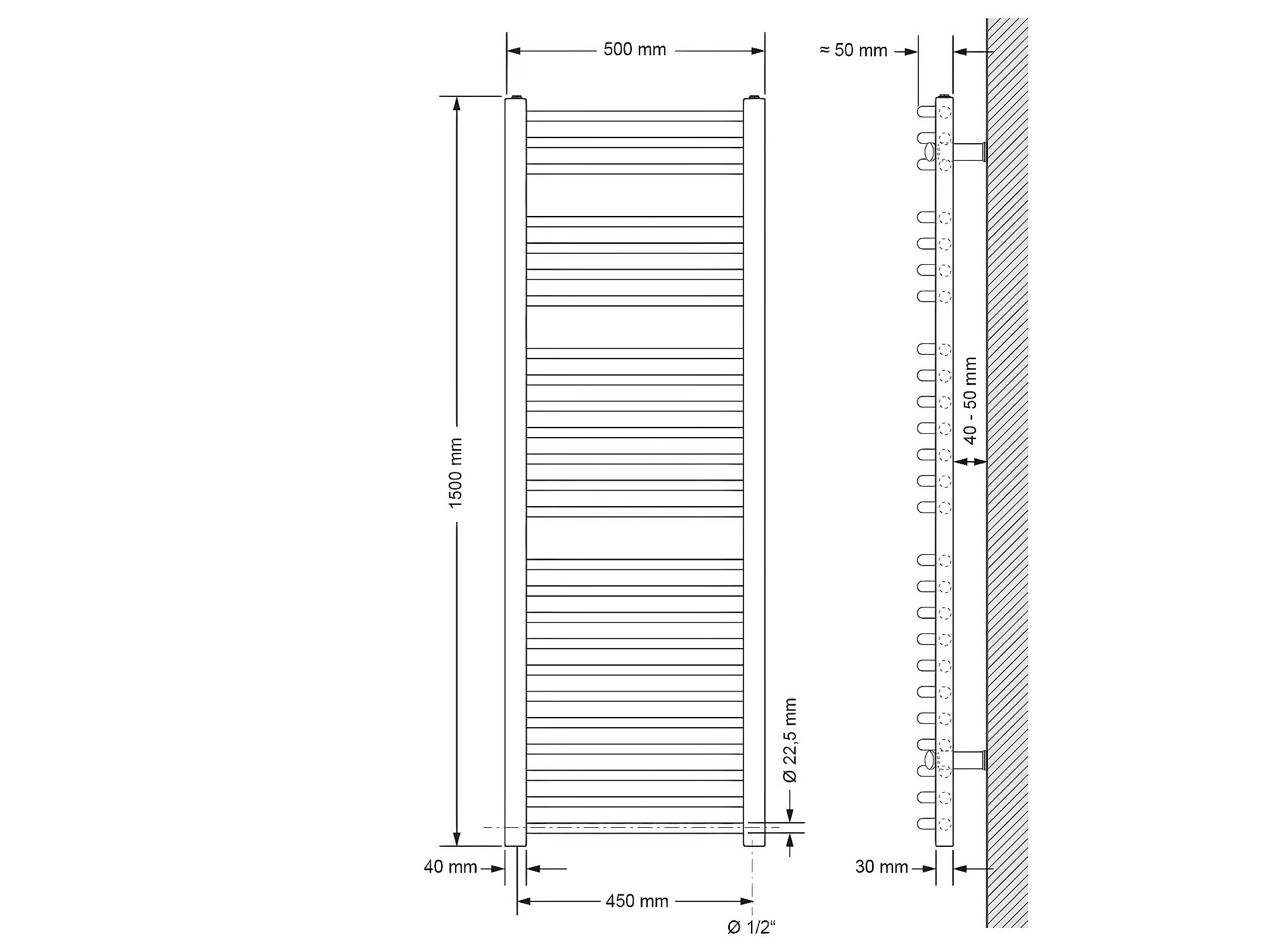 Radiateur sèche-serviette forme droite anthracite connexion latérale 50x150 cm