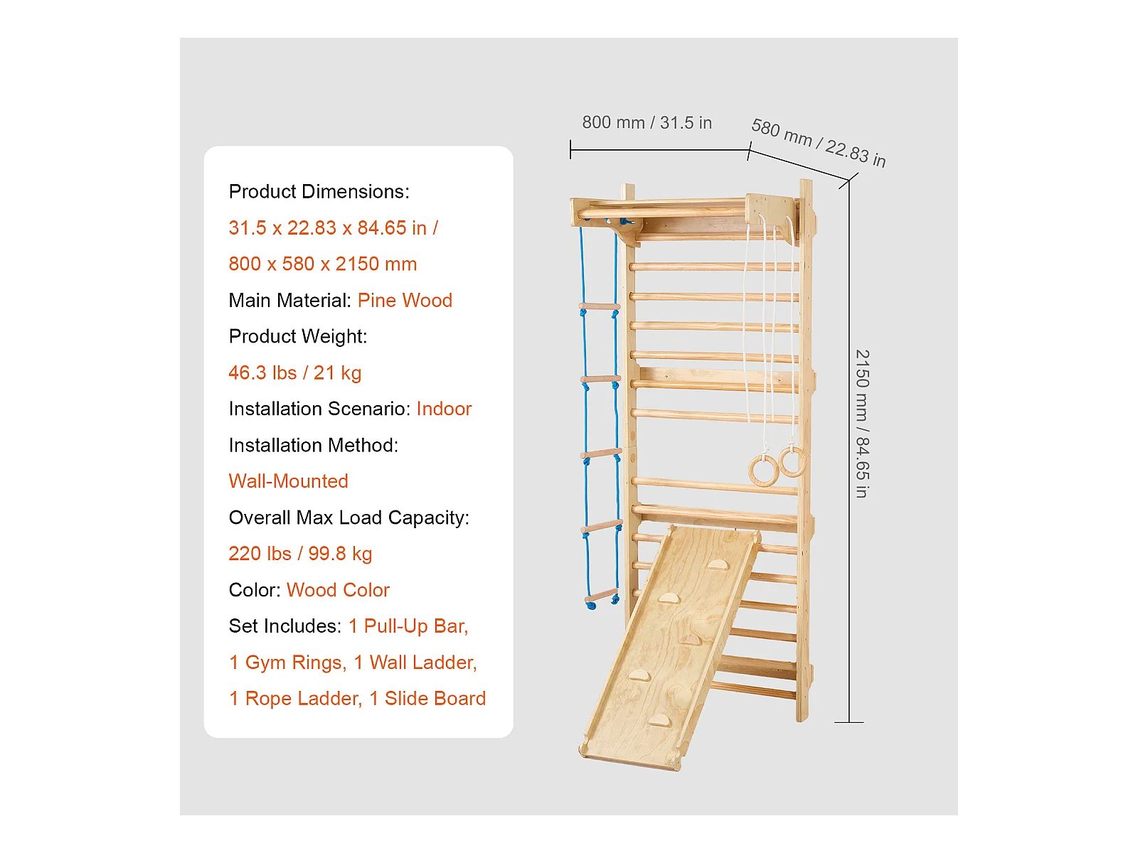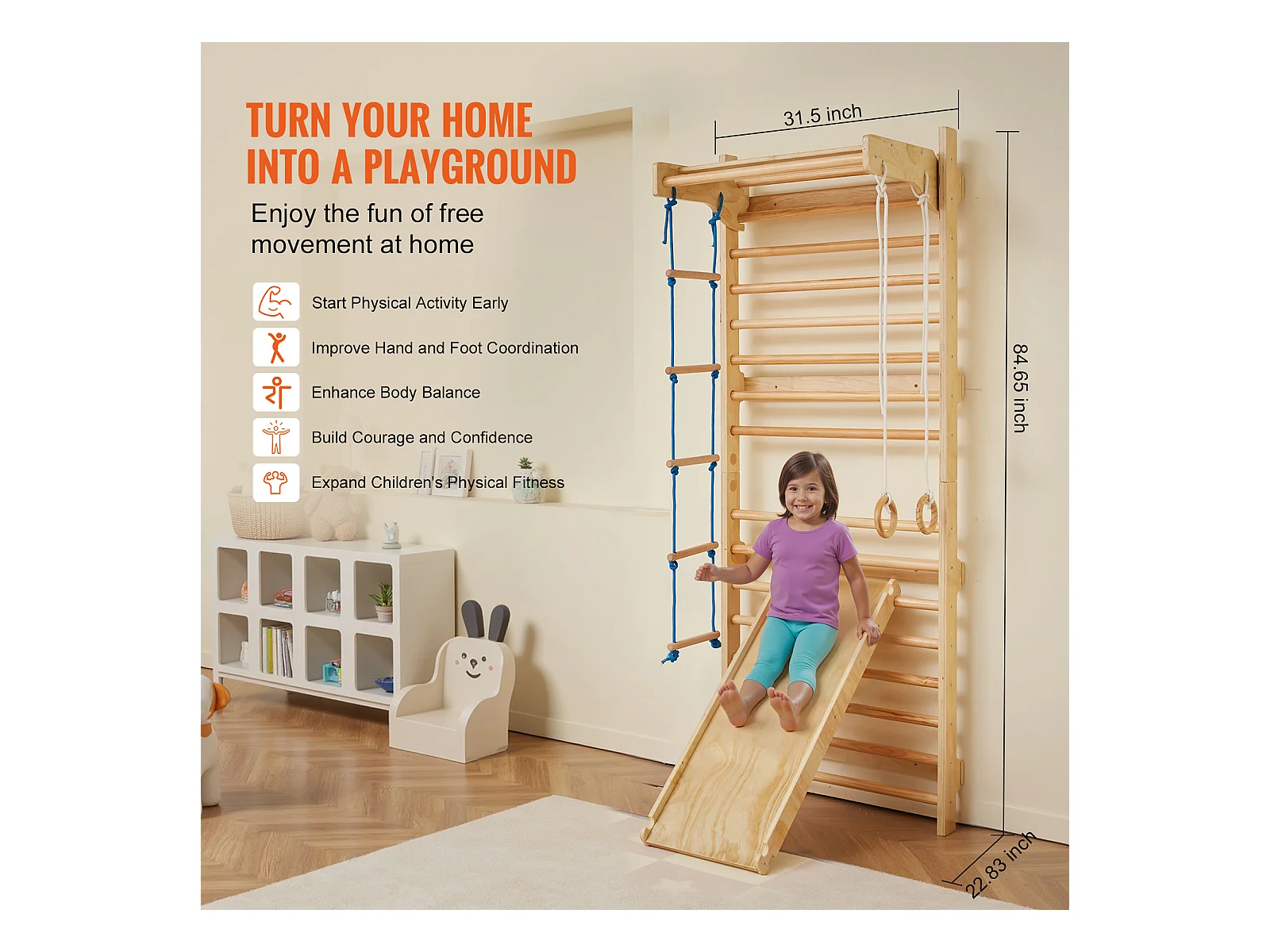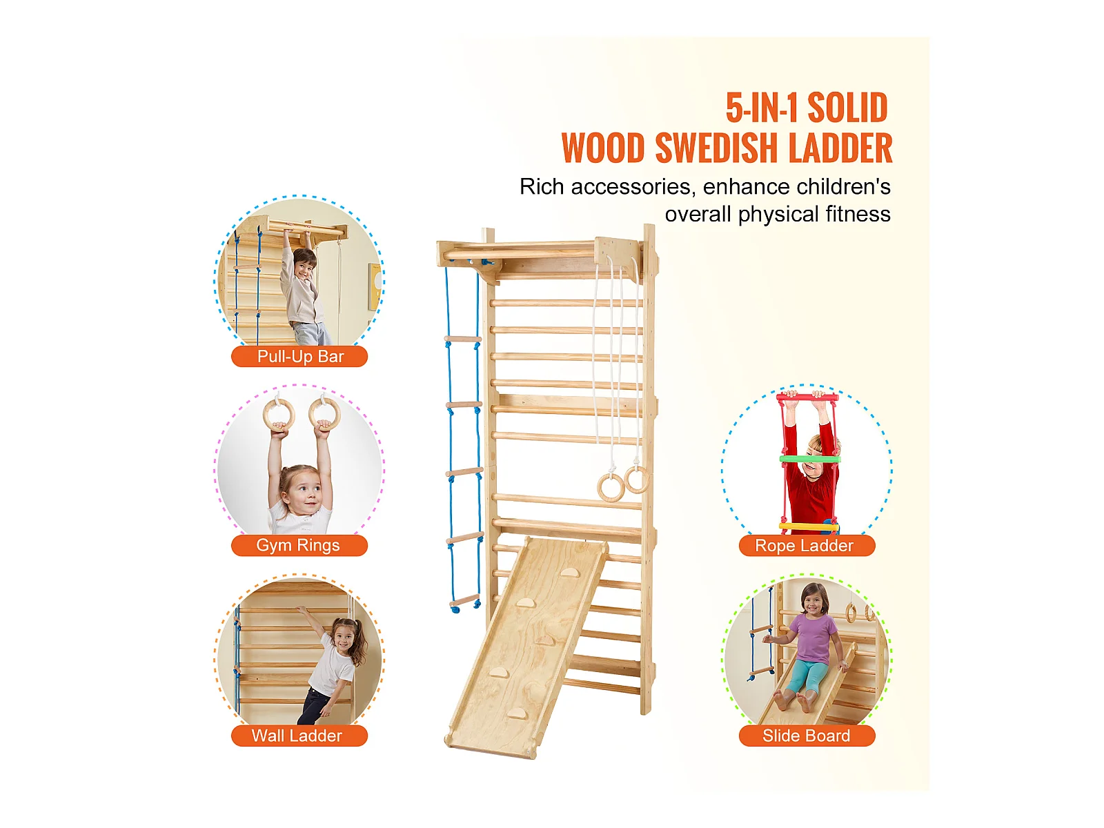 Échelle SucceBuy Murale Suédoise en Bois 5 en 1, Idéale pour Entraînement Physique et Gymnastique à Domicile ou en Salle de Sport