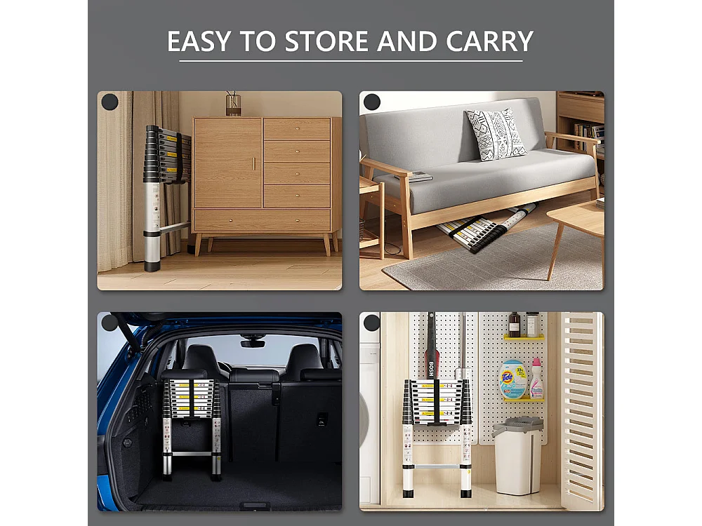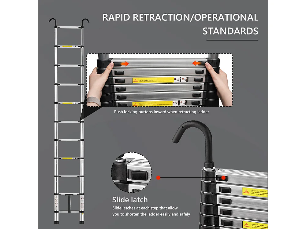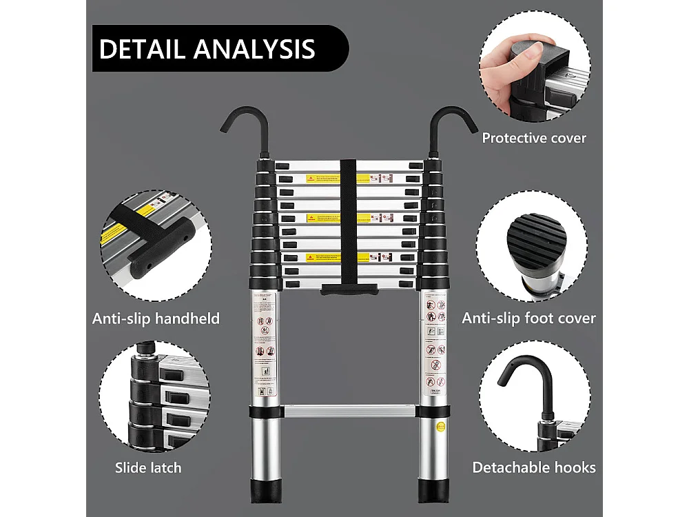 Échelle télescopique de 3,8 m en Aluminium - Droite Multi-Fonction Ladder - 13 barreaux - avec Pieds Antidérapants - Charge Max 150kg