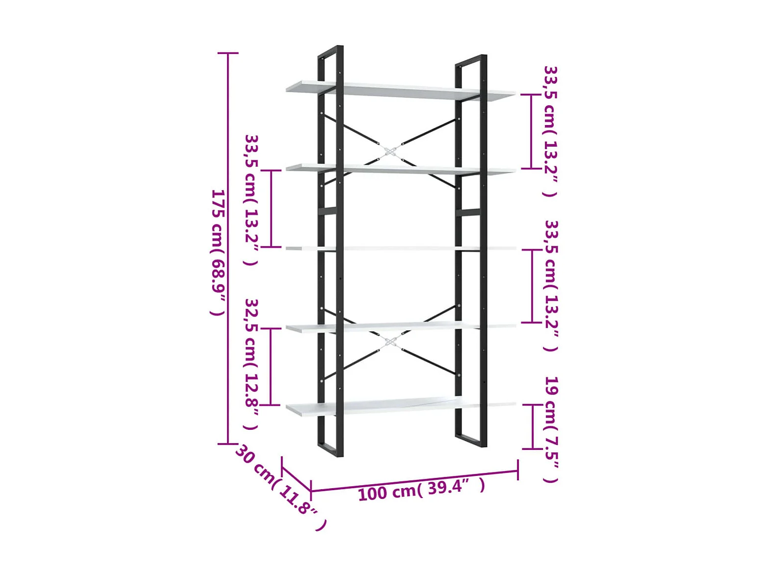 Edith Bibliothèque à 5 niveaux Blanc 40x30x175 cm Bois ingénierie