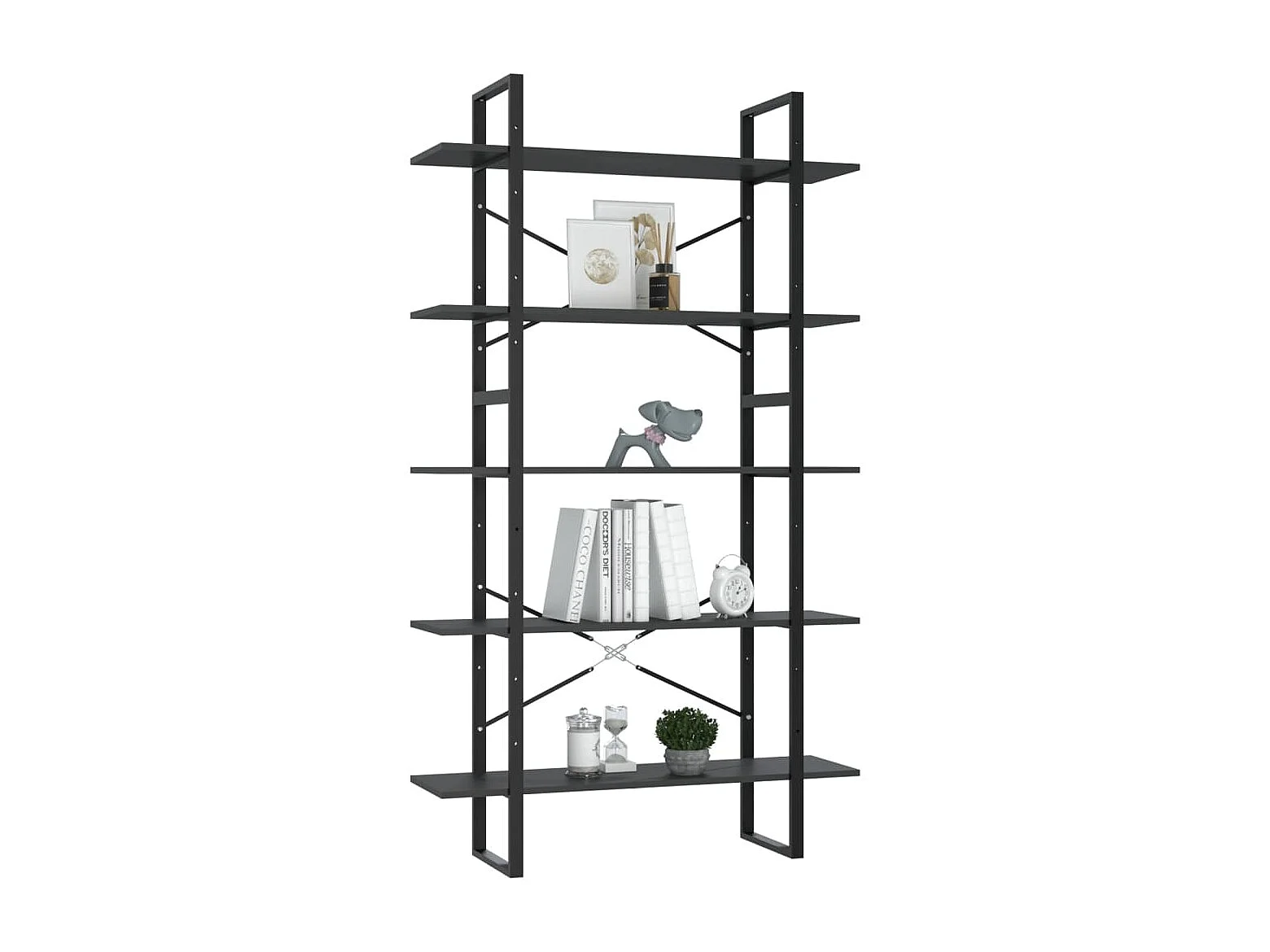 Edith Bibliothèque à 5 niveaux Gris 100x30x175 cm Bois d'ingénierie