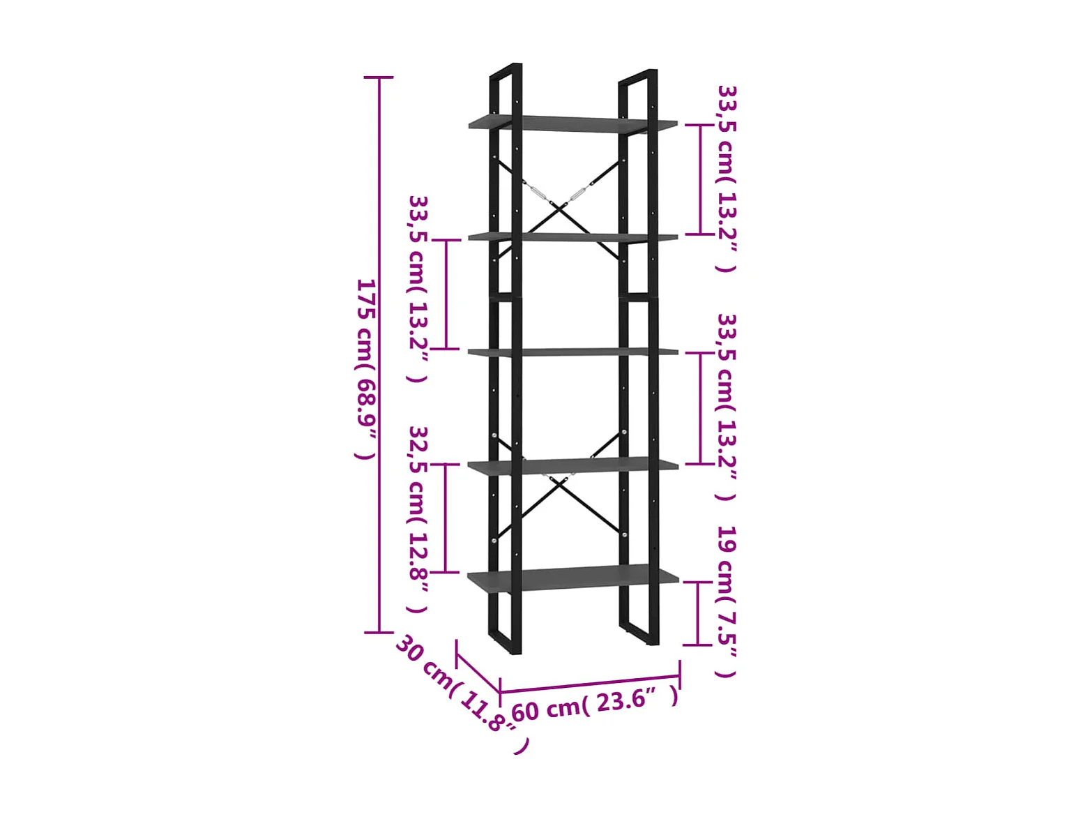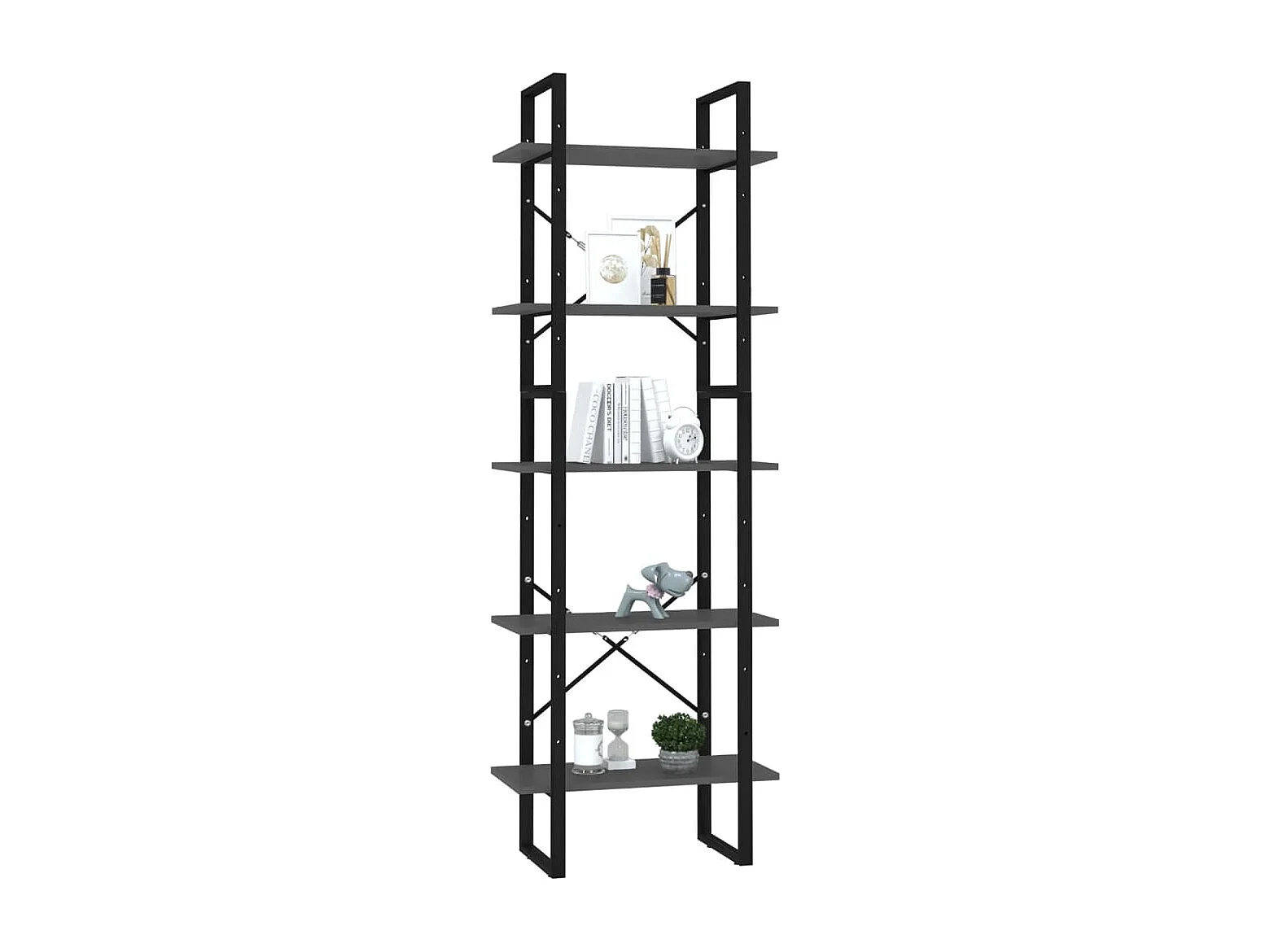 Edith Bibliothèque à 5 niveaux Gris 60x30x175 cm Bois ingénierie