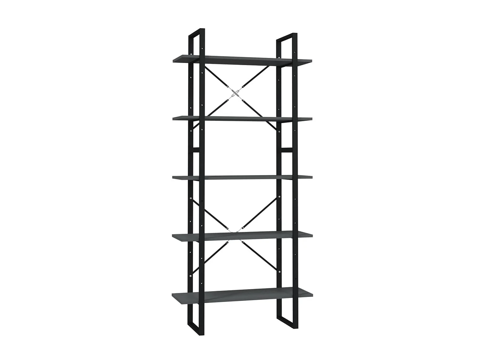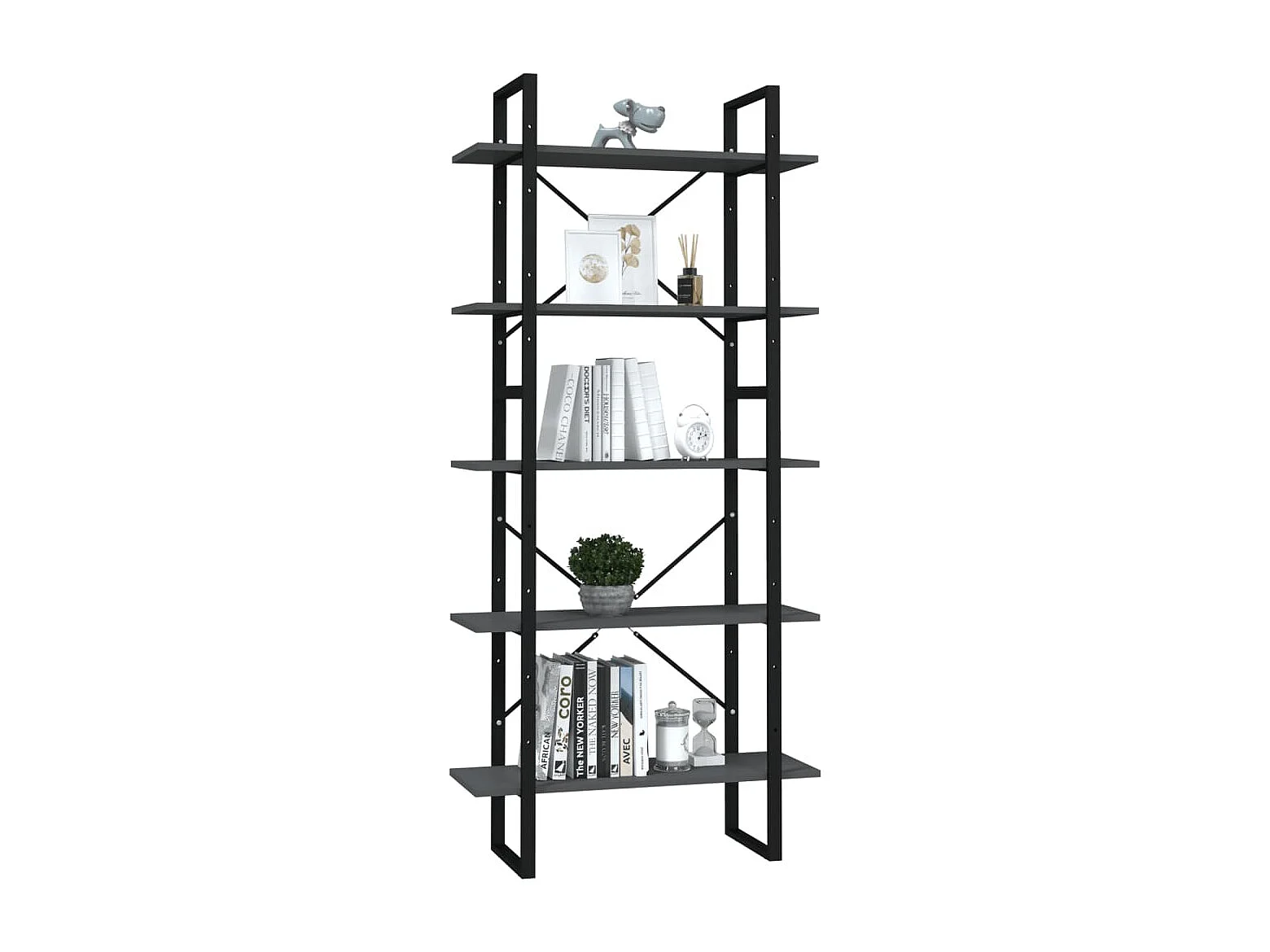 Edith Bibliothèque à 5 niveaux Gris 80x30x175 cm Bois d'ingénierie