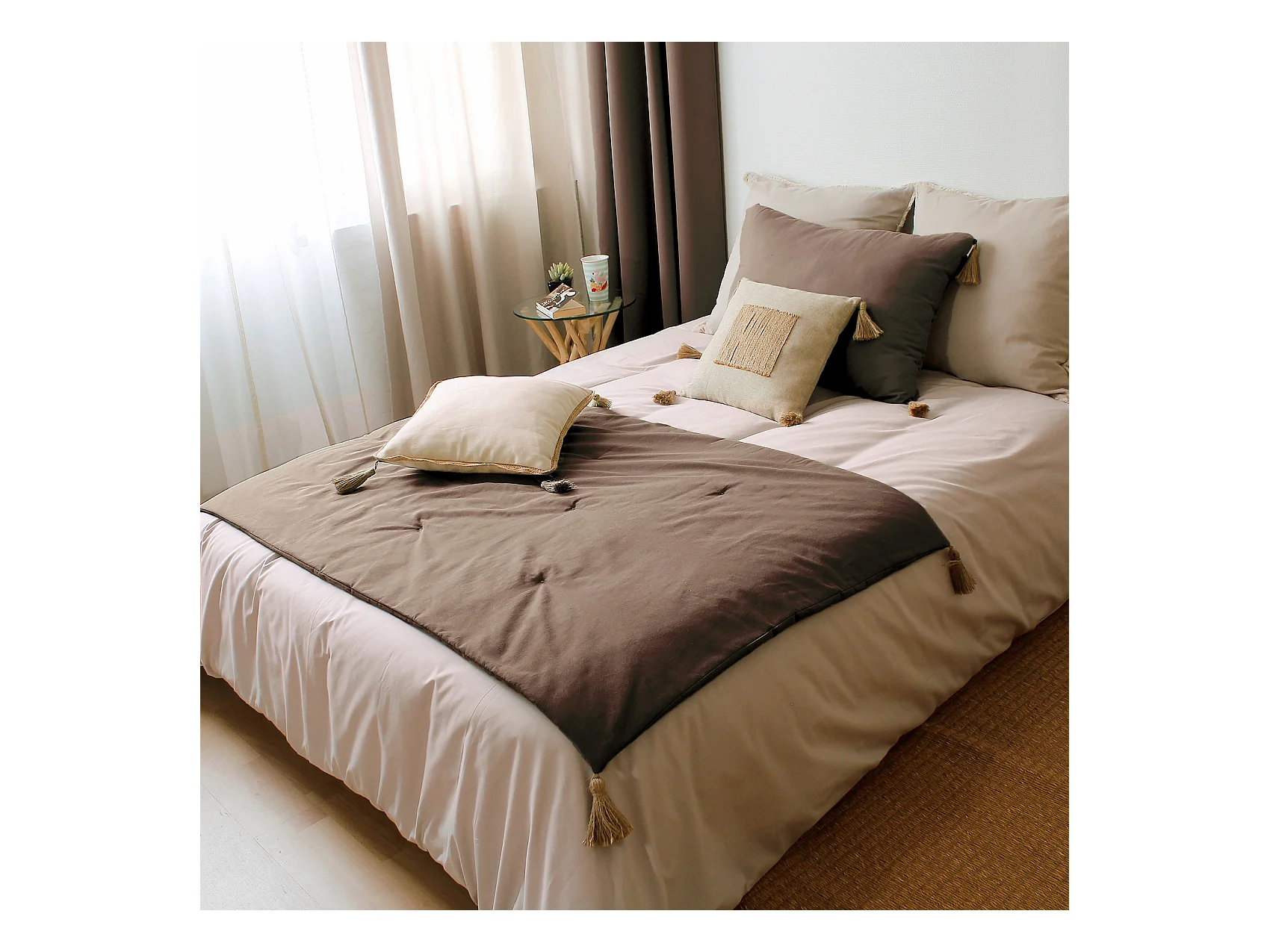 Jeté de Lit Beige motif Tuftés et Pompons sur les cotés 130 x 180 cm