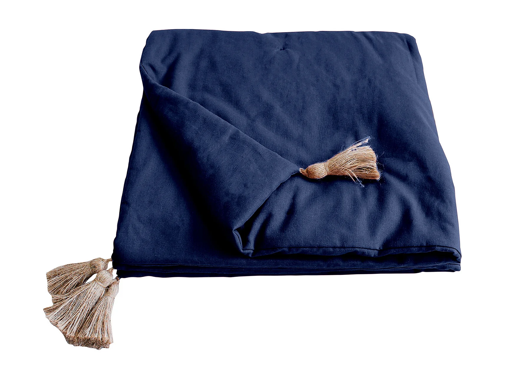 Édredon 90 x 200 cm lin lavé bleu avec 4 nouettes en jute - LUISA
