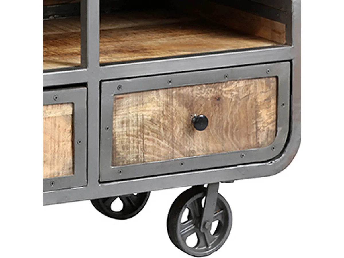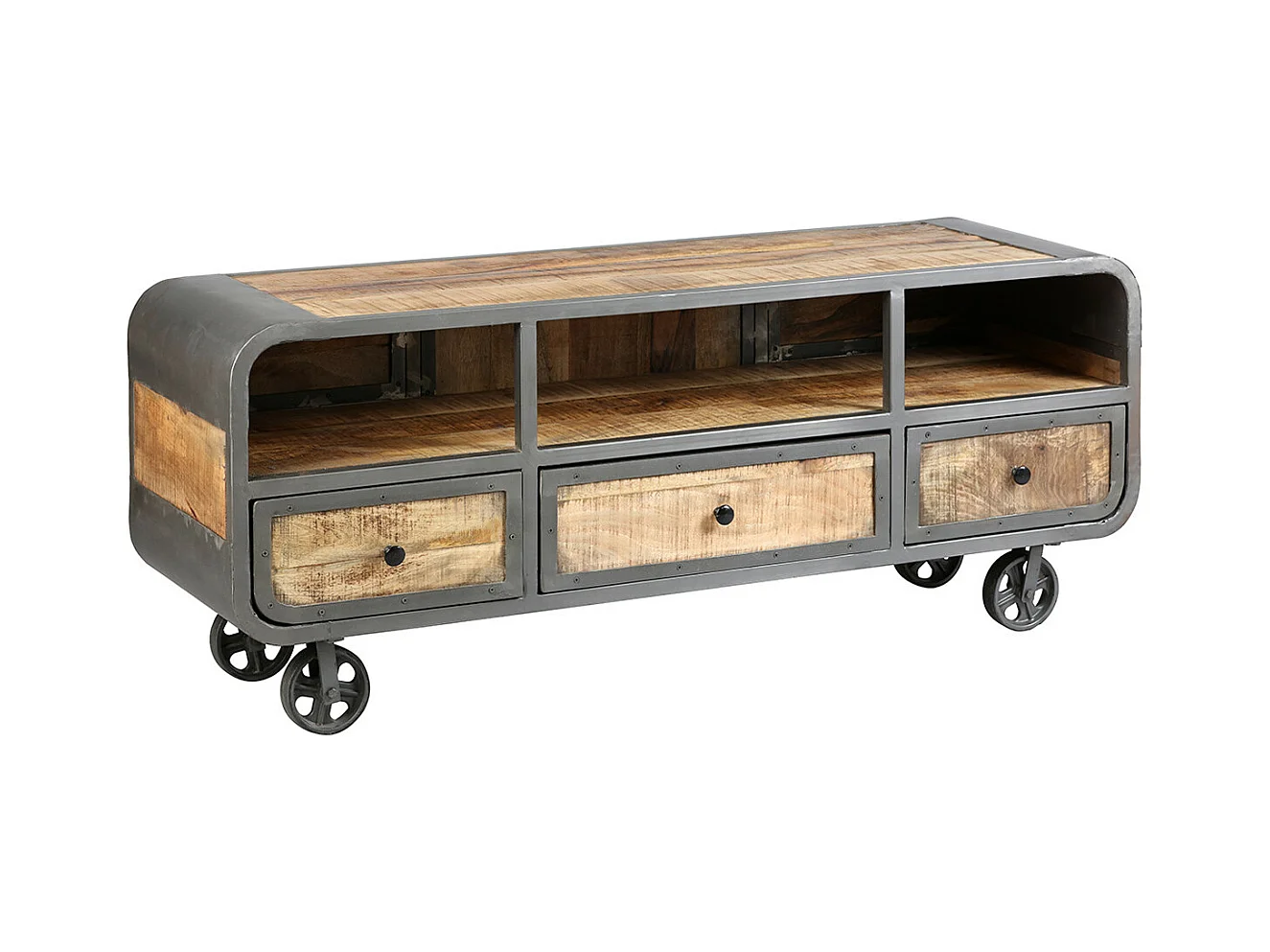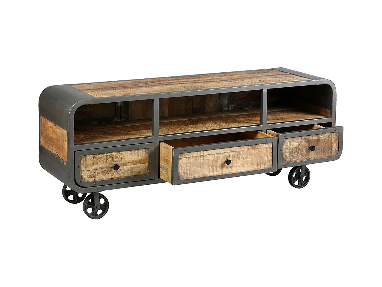 EDWIN - Meuble TV 3 Tiroirs Acier et Bois Massif