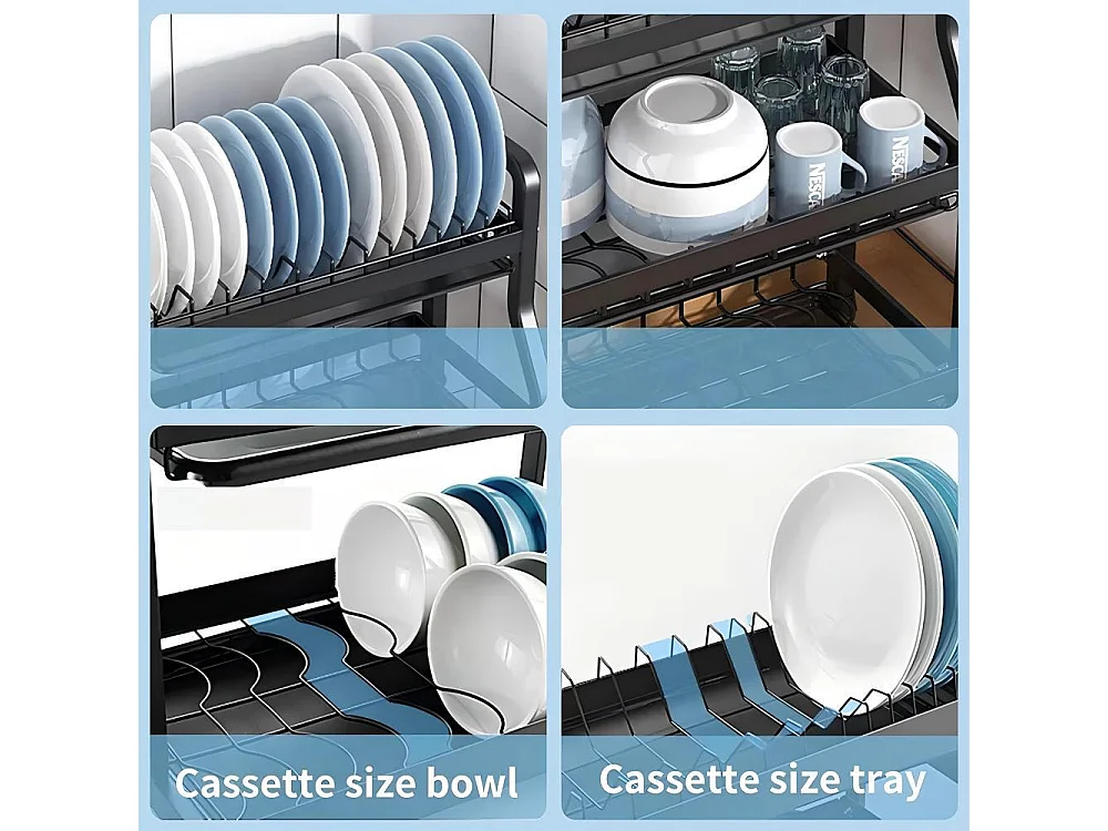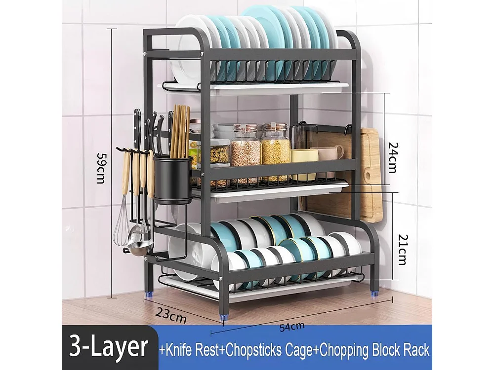 Égouttoir à Vaisselle, 3 Niveaux, avec porte, support de Planche à découper, bac d'égouttage, 105x30x80cm